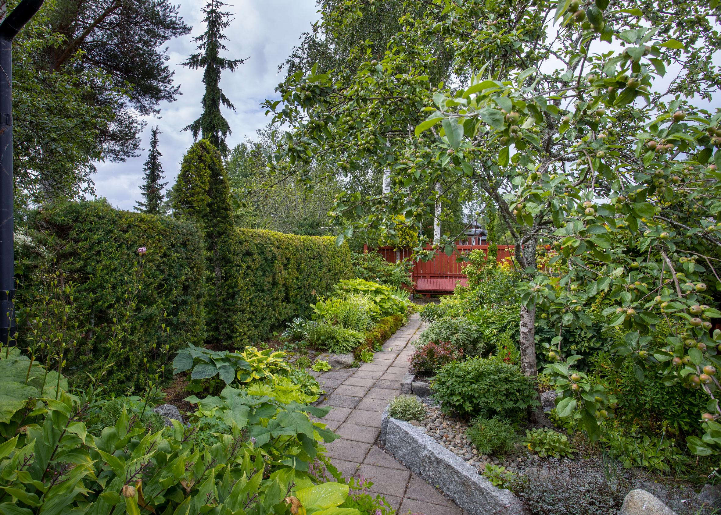 Koska tontti on pieni, liian pieni jos Barbrolta kysytään, haussa on ollut pieniä puulajeja. Niistä yksi on hänestä ylitse muiden: omenapuut. Ne ovat kestäviä, kasvavat kauniin muotoisiksi, kukkivat ylenpalttisesti keväällä ja kypsyttävät loppukesällä maukkaita hedelmiä, joista voi tehdä vaikka kompottia. Puiden syysvärikin on hieno.
