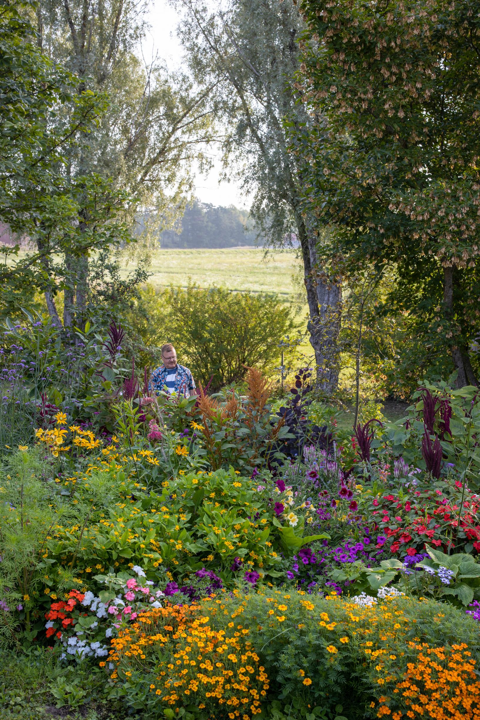Biologi Timo Peuraniemi kasvattaa pihallaan Paraisilla noin tuhat kesäkukkaa joka vuosi. Monet näyttävistä ja nopeakasvuisista kesäkukista ovat myös hyviä hyönteiskasveja.