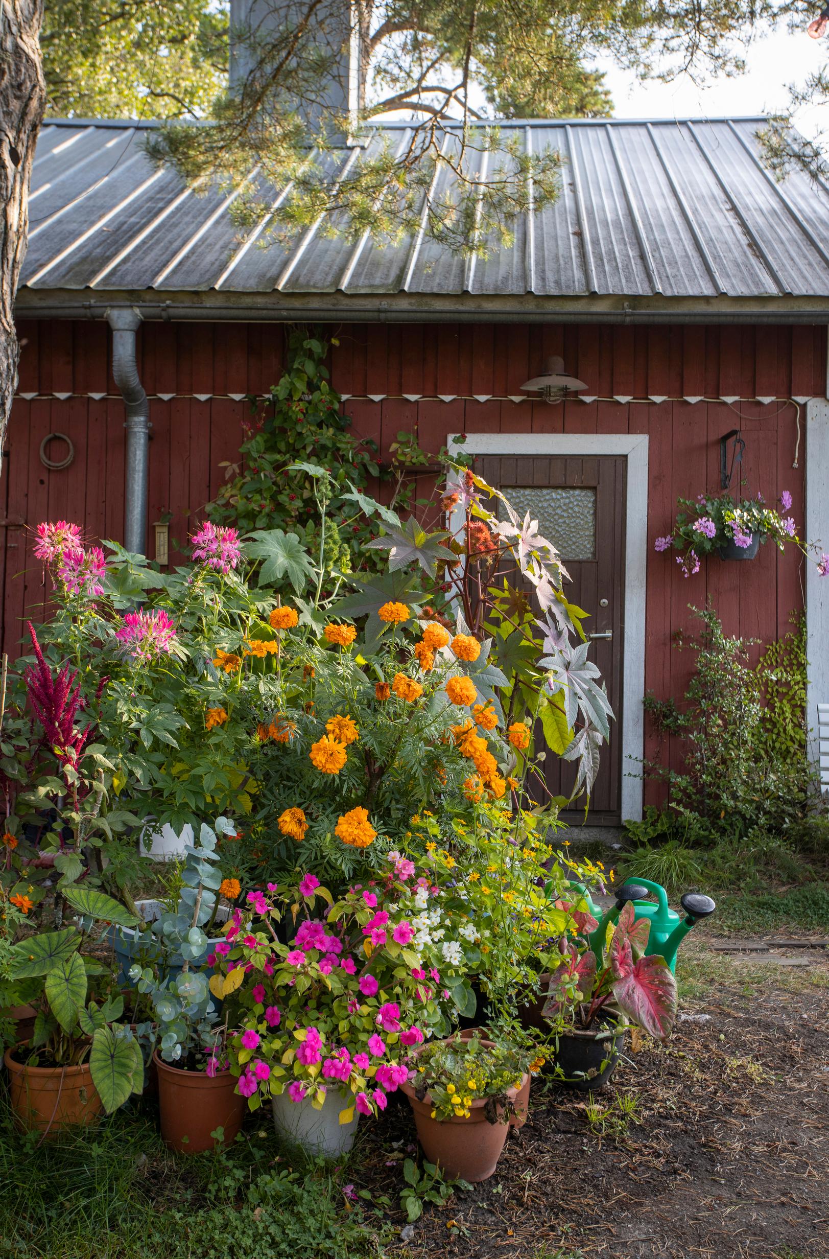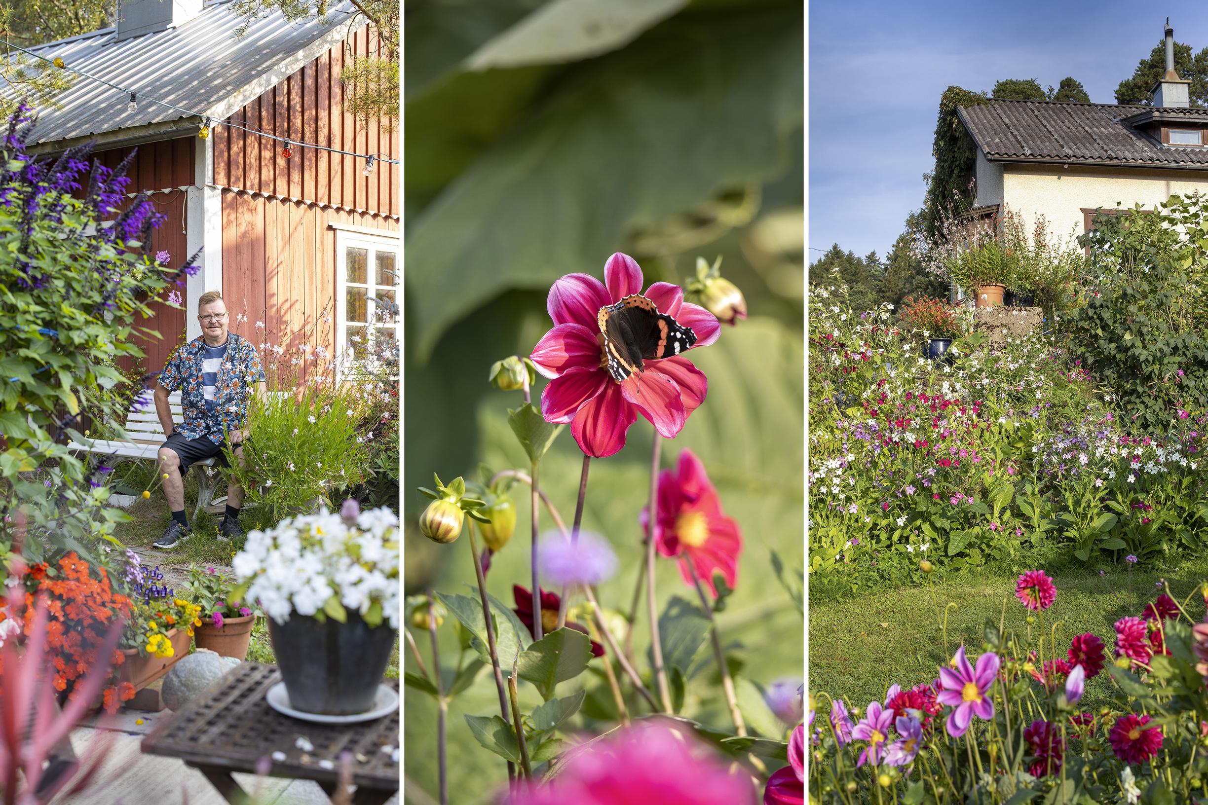 Pidän erityisesti nopeakasvuisista ja kookkaista, näyttävistä kesäkukista. Kasvatan maassa ja ruukuissa vuosittain 30–40 eri kesäkukkalajia, lajikkeita täällä on kymmenittäin. Esimerkiksi salvioissa, päivänhatuissa ja revonhännissä riittää mielenkiintoisia lajikkeita kokeiltavaksi. Monet kukat ovat myös hyviä hyönteiskasveja, ja pihassani onkin paljon perhosia ja muita pölyttäjiä. Mieli lepää, kun katselen puutarhaa, jossa perhoset liitävät ja kukat tuoksuvat.