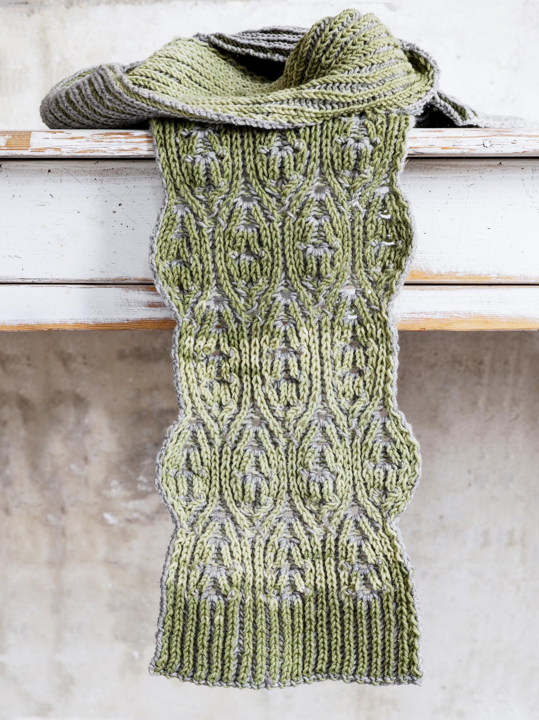 Kaunis briossihuivi ihastuttaa eläväisillä lehtikuvioilla – kurkkaa ohje ja opettele kaksivärisen neuloksen tekniikka