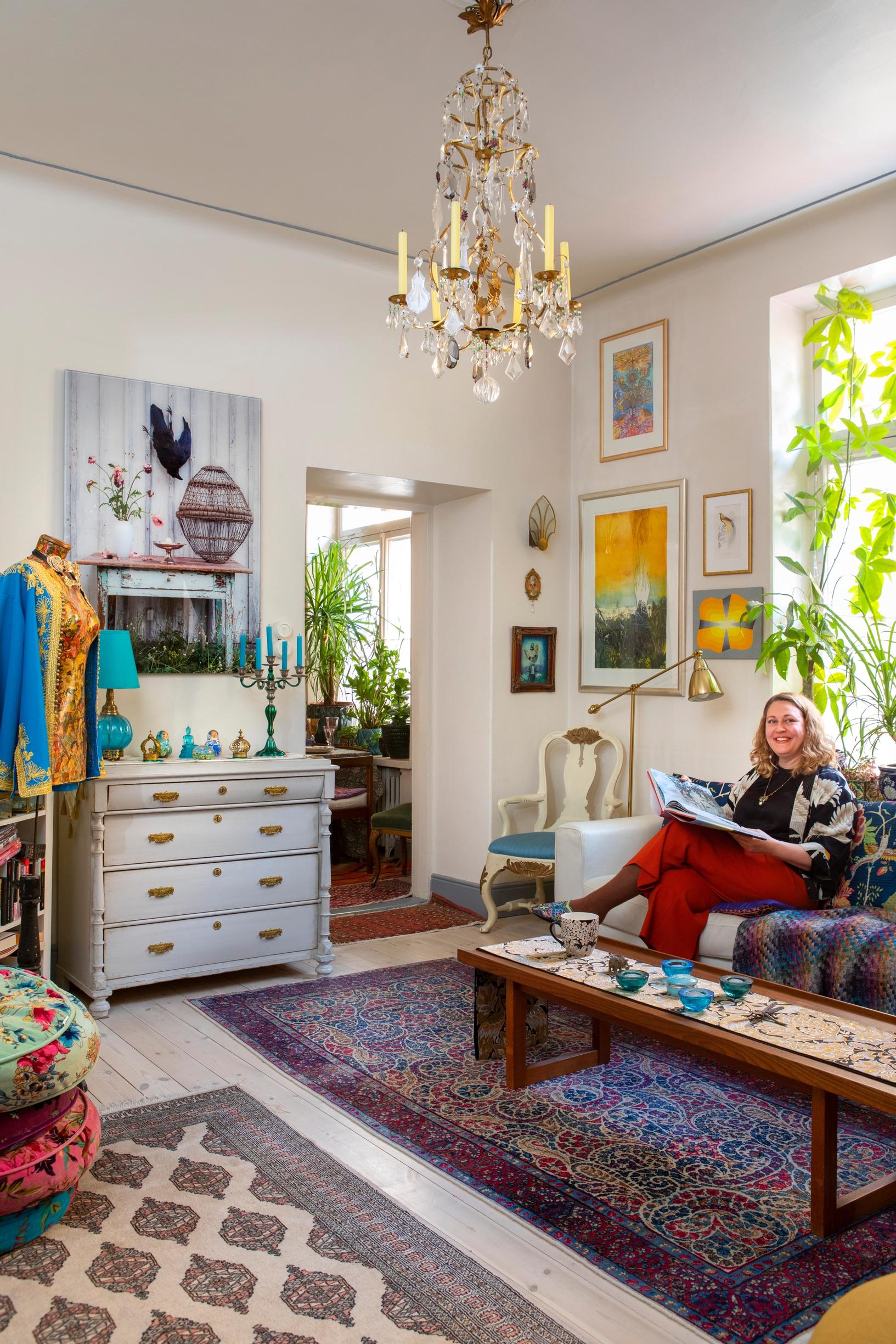 ”Kun seinät olivat tyhjät ja valkoiset, tunsin tukehtuvani” – Corinna täytti kotinsa taiteella, matoilla ja vintagevaatteilla