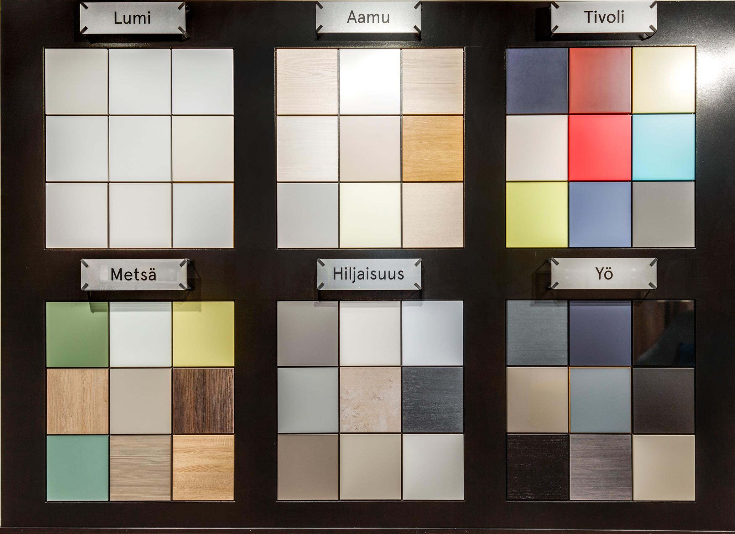 Keittiön värimaailman suunnittelun avuksi myymälään on loihdittu näyttävä väriseinä, jossa on kuusi erilaisen teeman mukaan koottua väripalettia. Paletit on nimetty kuvaavasti Lumeksi, Aamuksi, Tivoliksi, Metsäksi, Hiljaisuudeksi ja Yöksi. Jokaiselle teemalle on luotu tarina, jonka yhteydessä tarjoillaan ammattilaisen vinkit värien käyttöön sisustuksessa.