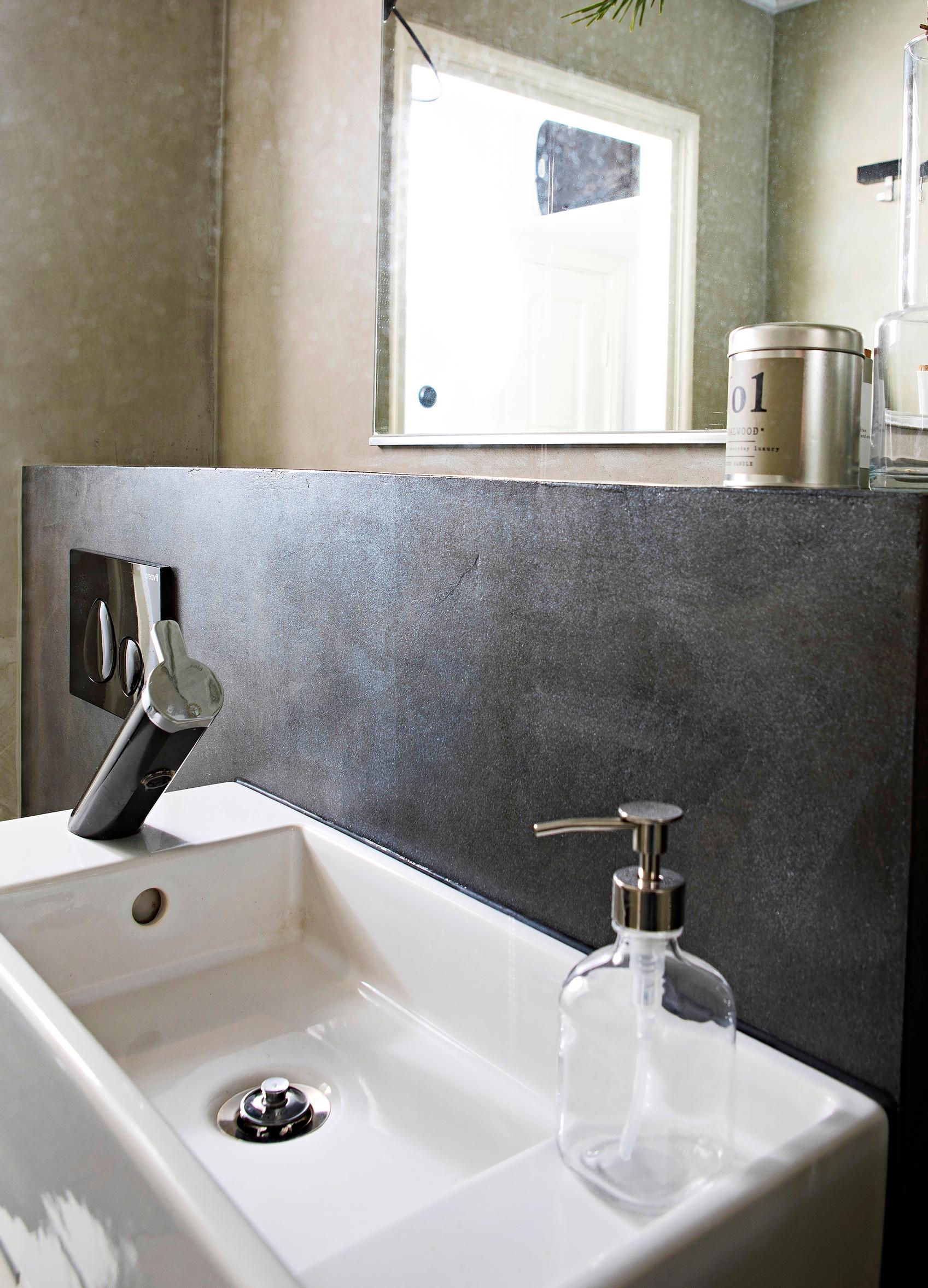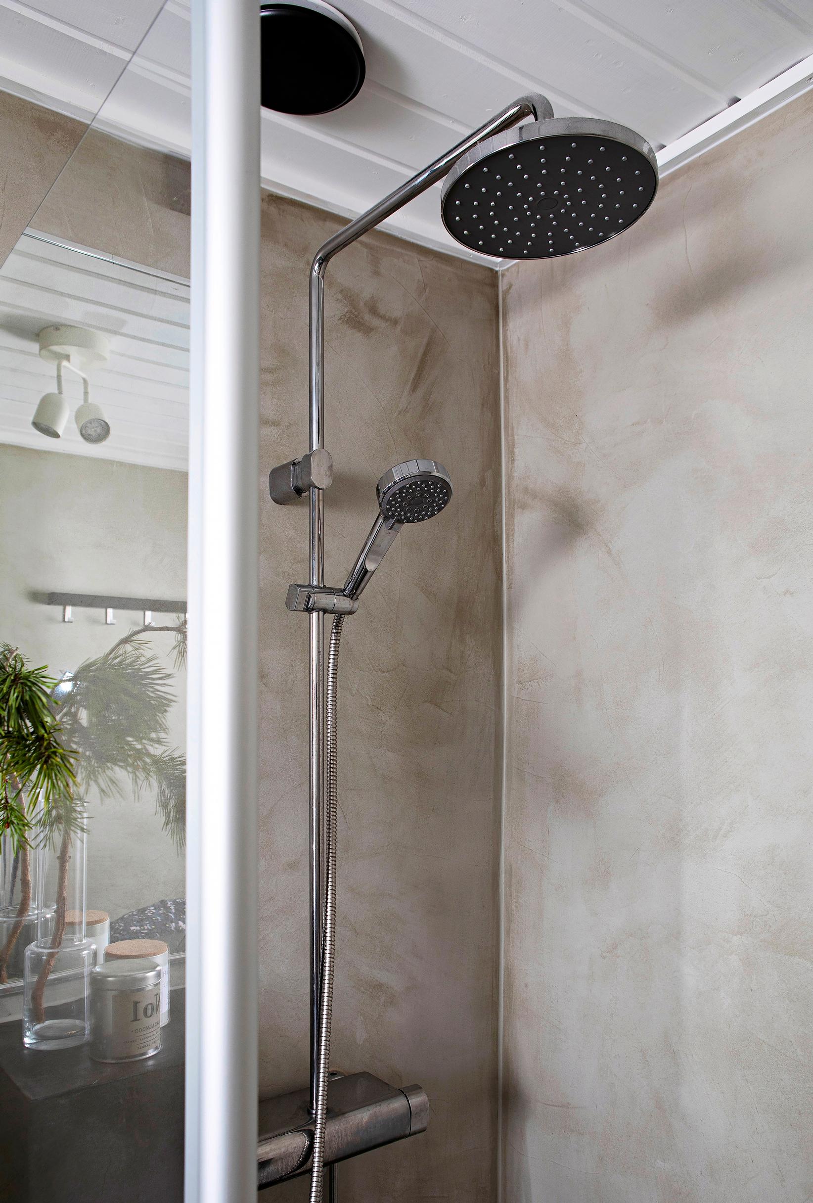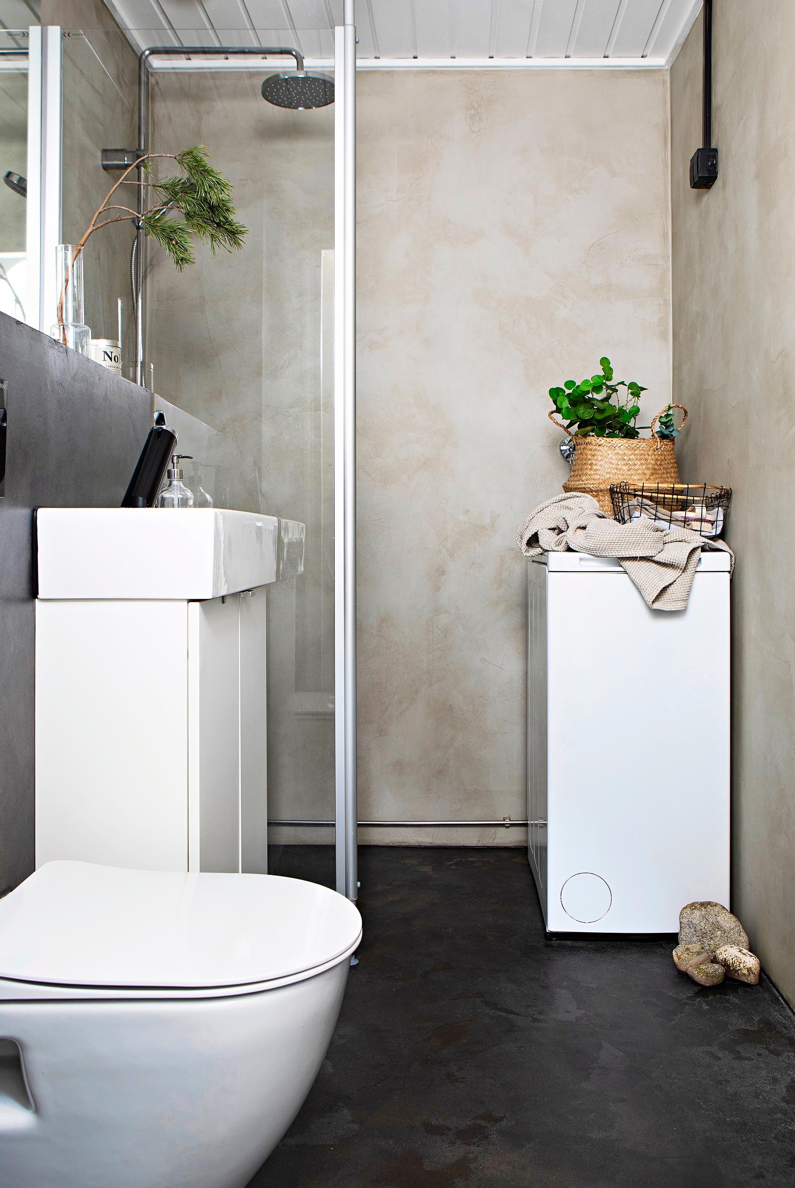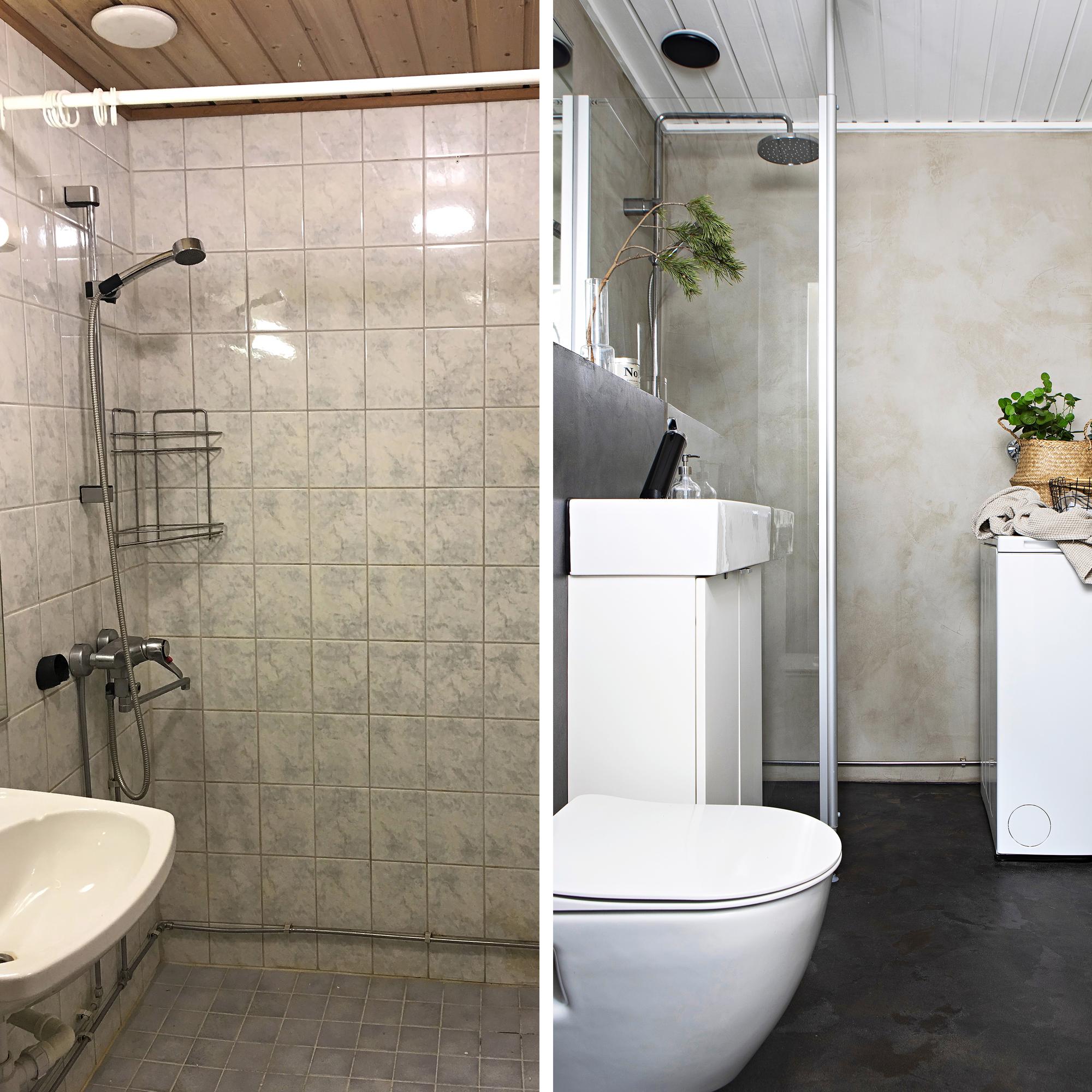 Erikoismaalari Kati Jensen oli miettinyt kylpyhuoneensa remontoimista pitkään. Pian aamupesun jälkeen hän sai ajatuksen mikrosementiltä näyttävistä pinnoista. Kati halusi myös välttää asbestikartoituksen, mahdolliset asbestipurkutyöt ja kalliit kustannukset. Tasoitteilla toteutettava remontti sai helposti hyväksynnän taloyhtiön isännöitsijältä.