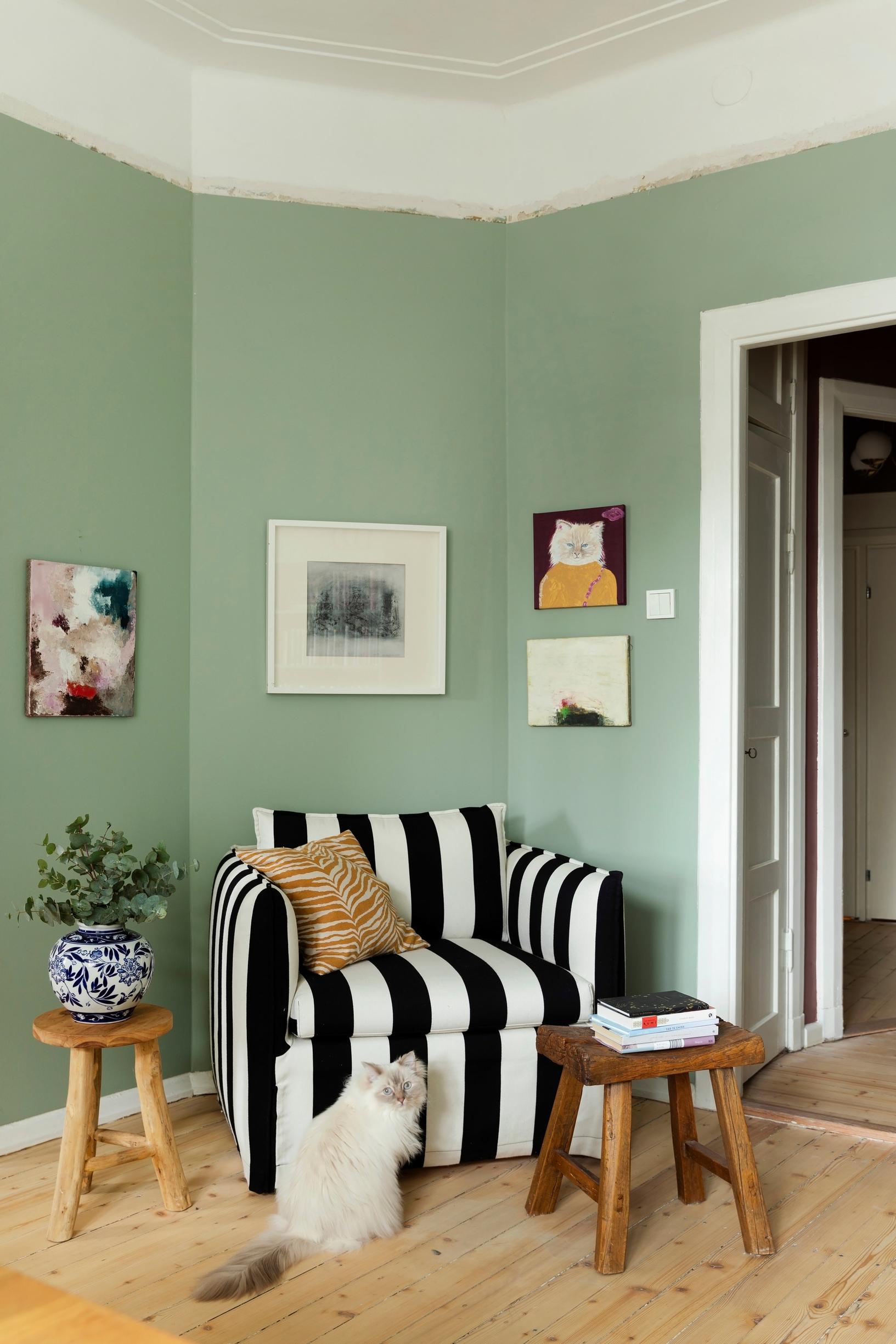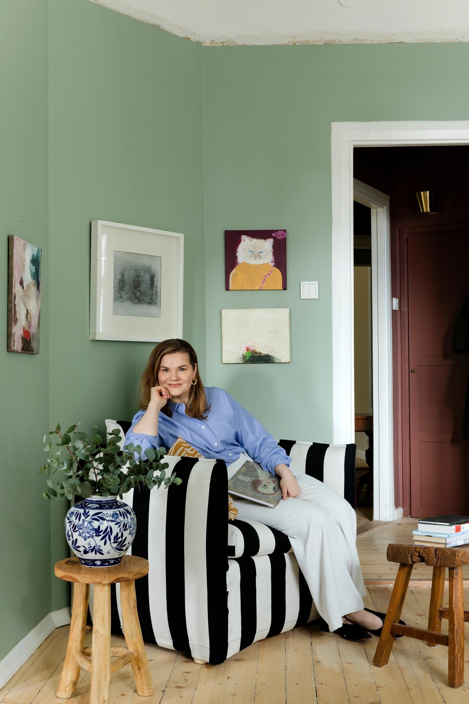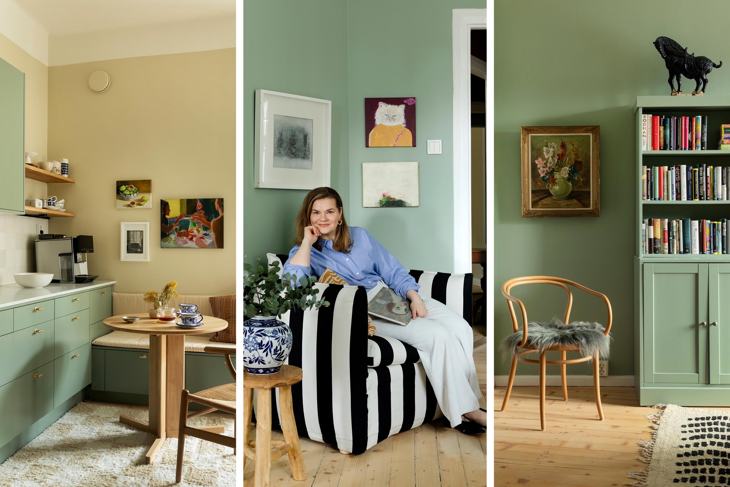 Vihreä salonki ja keittiö kuin kissakahvila! Eeva Kolulle koti on paikka, jossa maailma voi olla juuri sellainen kuin sen toivoisi olevan