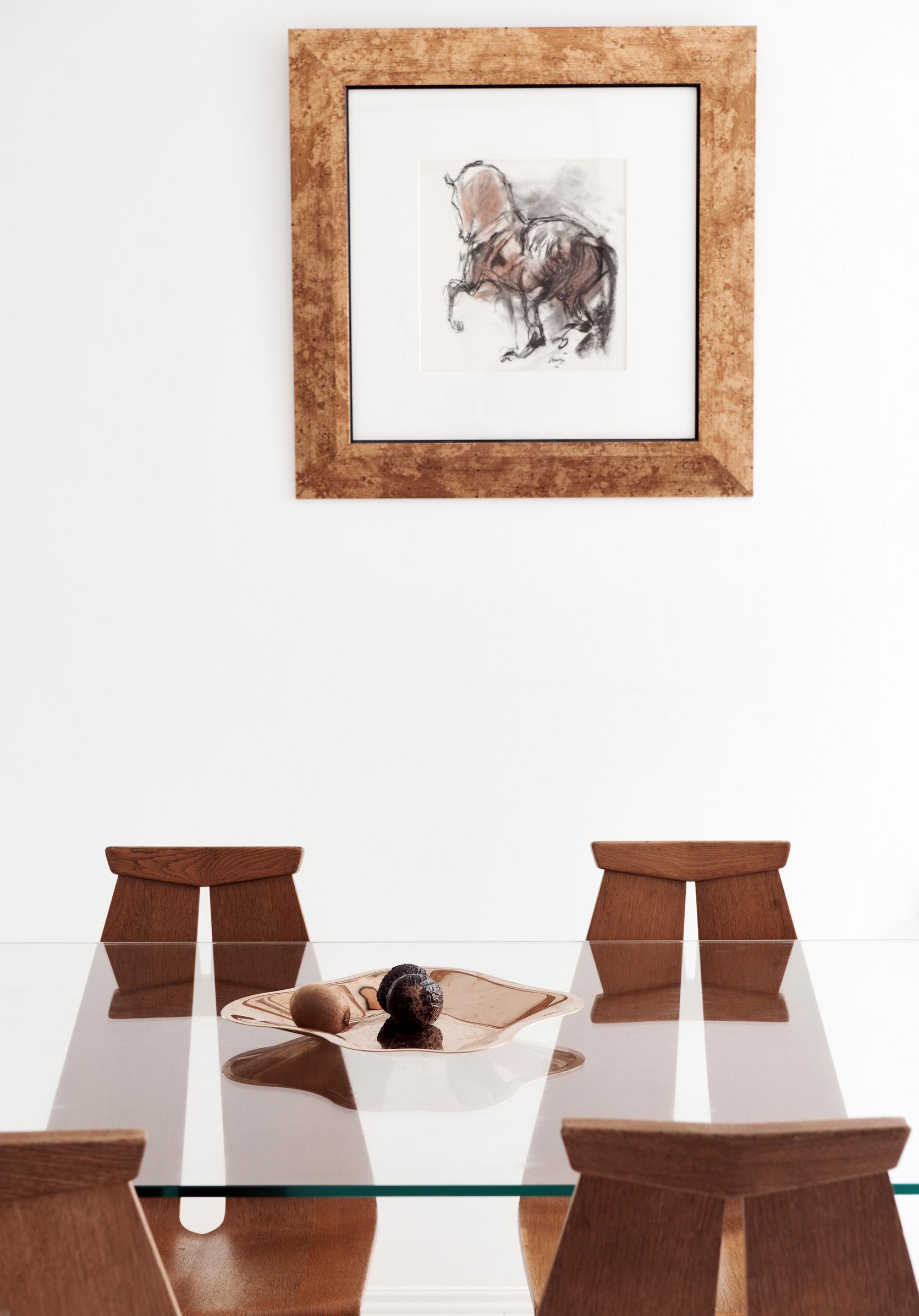 – Toinen meistä on keräilijä ja toinen minimalisti. Tosin ajan mittaan roolit ovat pehmentyneet. Pääsemme hyvin yhteisymmärrykseen kodin hankinnoista, ja loppujen lopuksi meillä on aika samanlainen maku, Eeva toteaa.