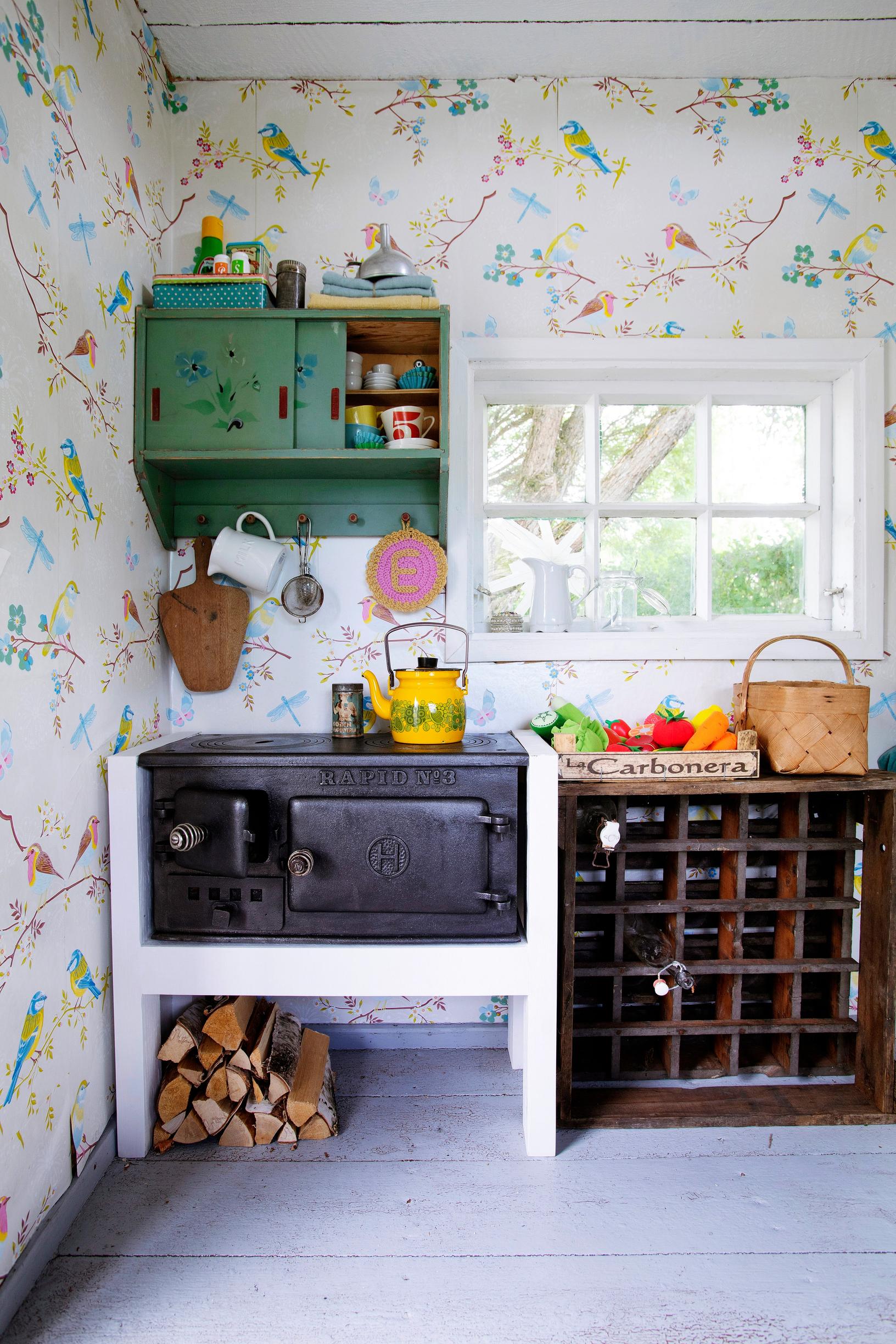 Högforsin hella ja 40-luvun astiakaappi! Eevin leikkimökki on supersuloinen – ja aivan kuin oikea koti