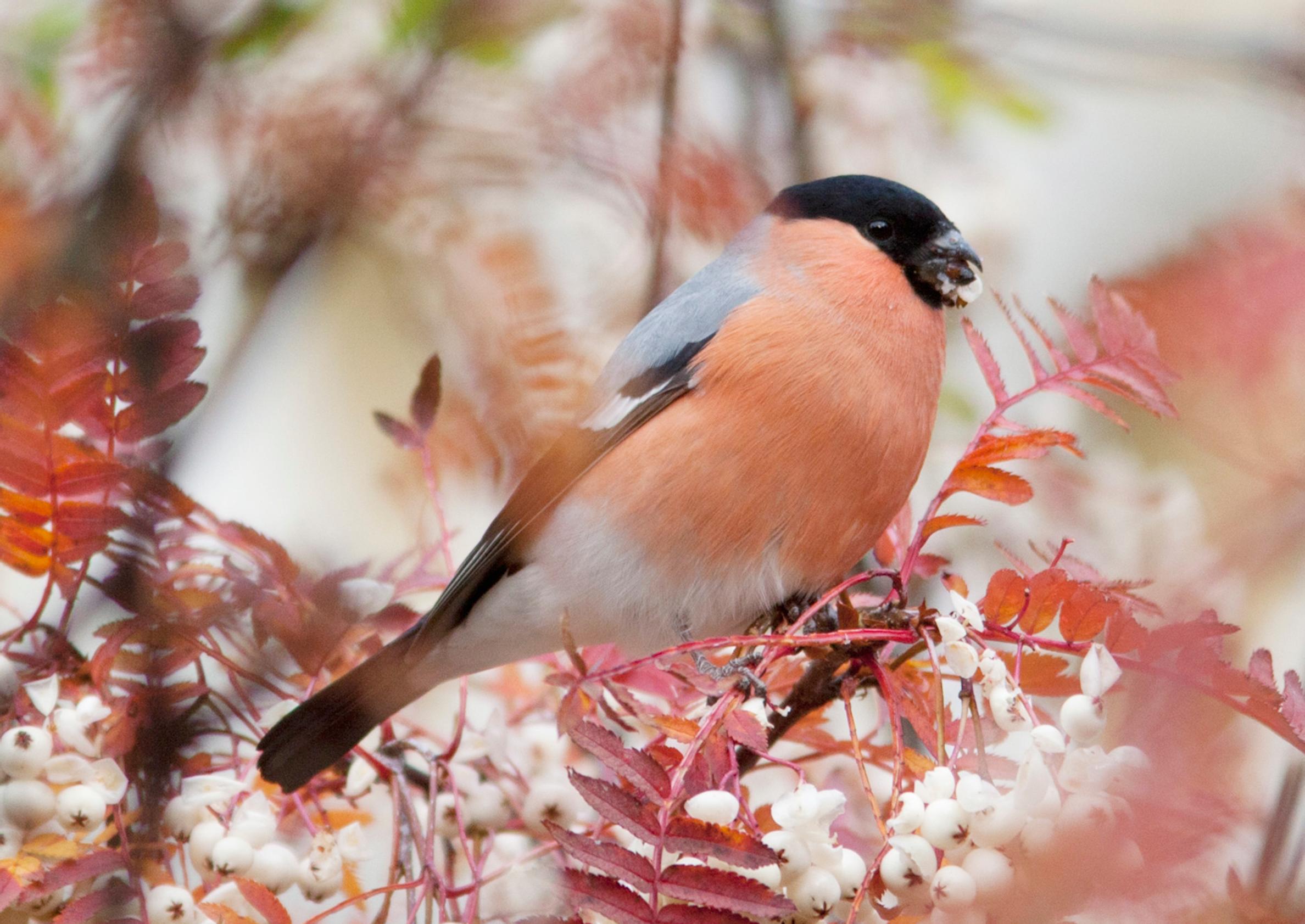Puutarhassa: Lintulaudoilla hieno näky varsinkin punaisena lumiseen aikaan. Ääritapauksissa syö liikaa silmuja.