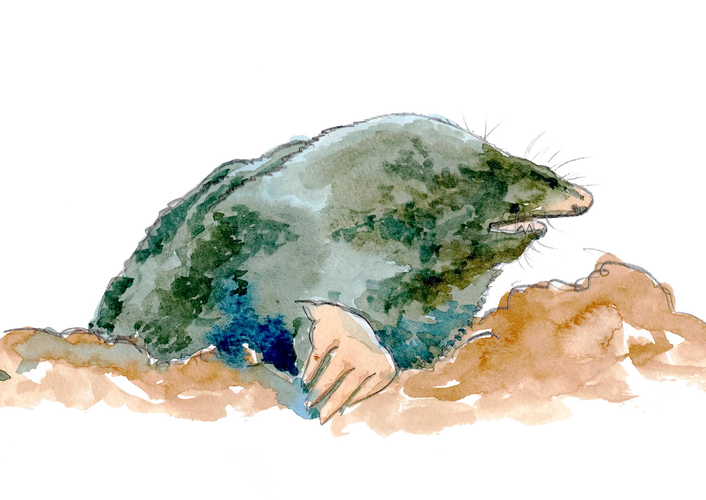 Tuntomerkit: Pitkä pyöreä keho, tummanharmaa turkki, lyhyet ja leveät jalat. Vanha nimi maamyyrä.