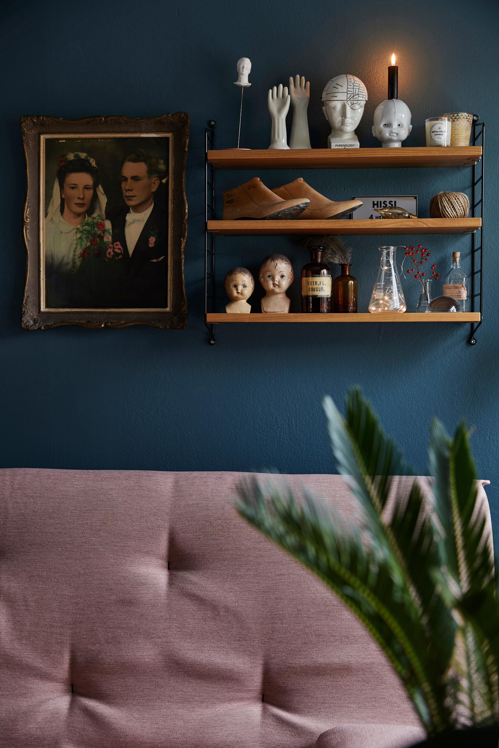 Aina kun löydän uuden vintagekalusteen, pitää hankkiutua jostain toisesta eroon. Niinpä pikkuhiljaa ja vääjäämättä sisustus muuttuu mieltymysten mukana. Yhdistävänä tekijänä on kuitenkin 1950-luku. Meillä on outojakin esineitä, kuten irtopäitä: kaikkea ei tarvitse ottaa niin vakavasti sisustuksessakaan.