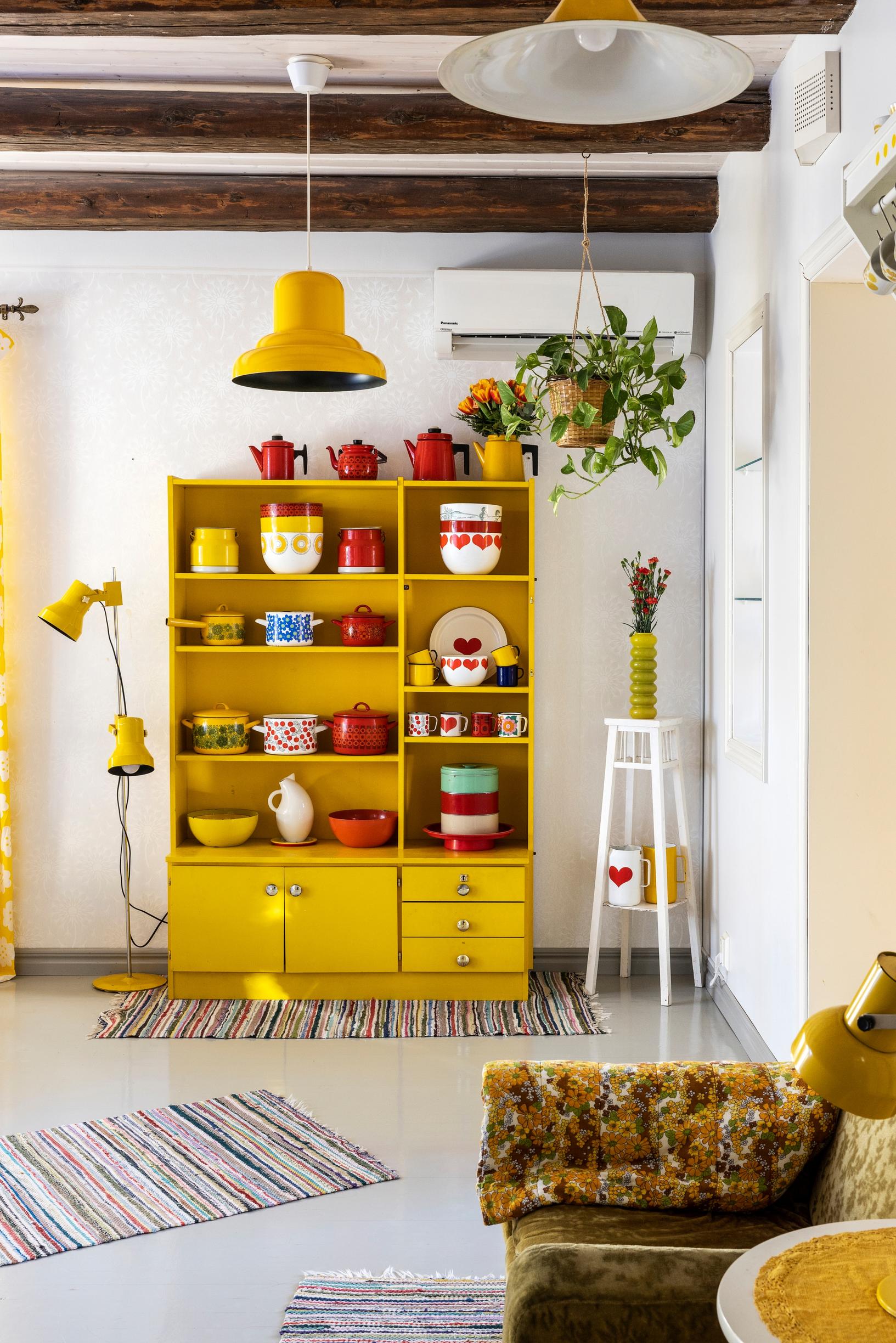 Överikeltainen lattiasta kattoon! Elisa Luomaranta eli Instagramin Elluyellow keräilee retroa ja sisustaa lempivärillään
