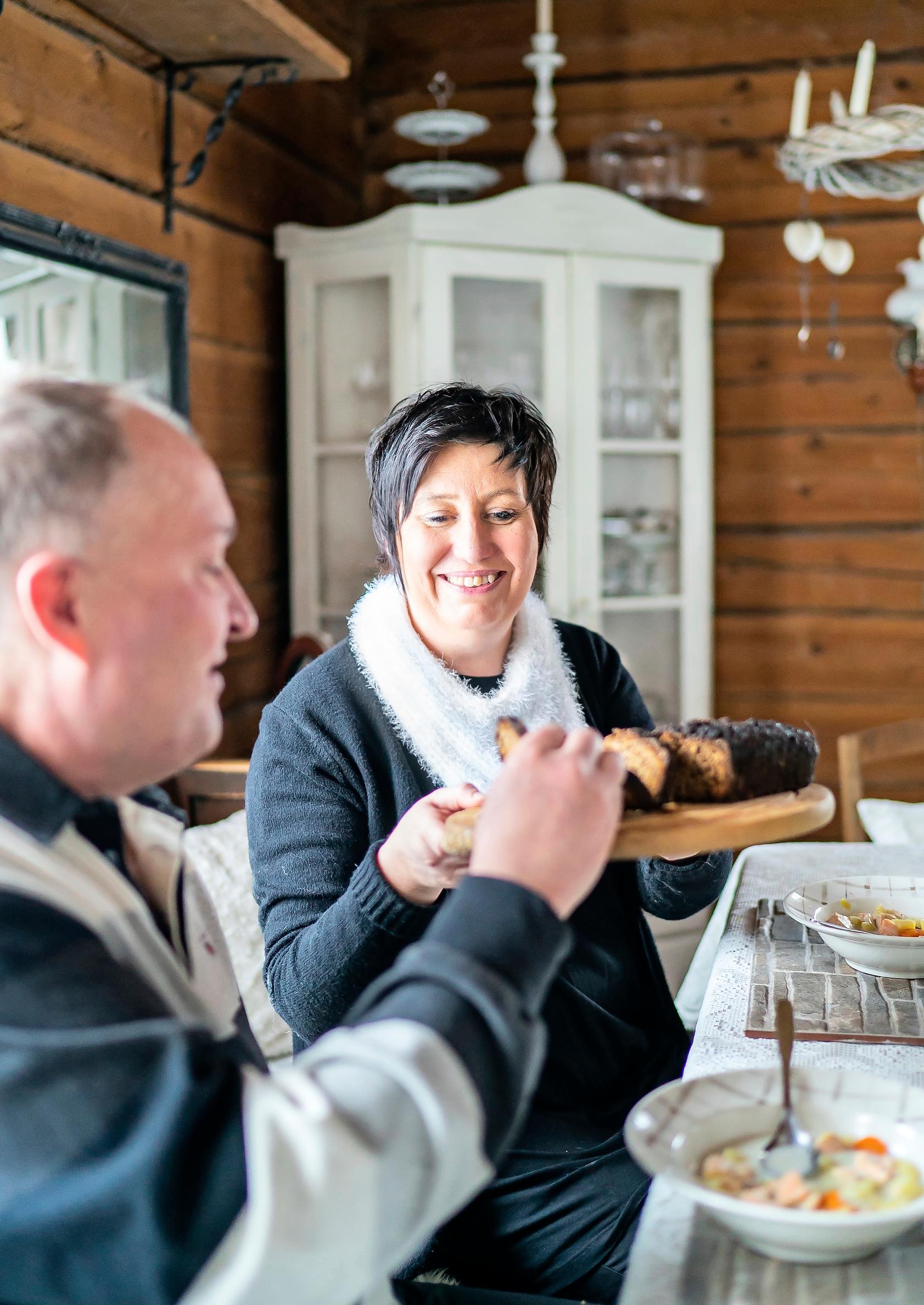 – Minä viihdyn keittiössä, ja yksinkertainen maalaisruoka on meidän molempien suosiossa. Minä ehkä kokkaan, mutta Elisa leipoo. Juuri nyt rouva on villiintynyt mäskileivän tekemisestä, Arto paljastaa.