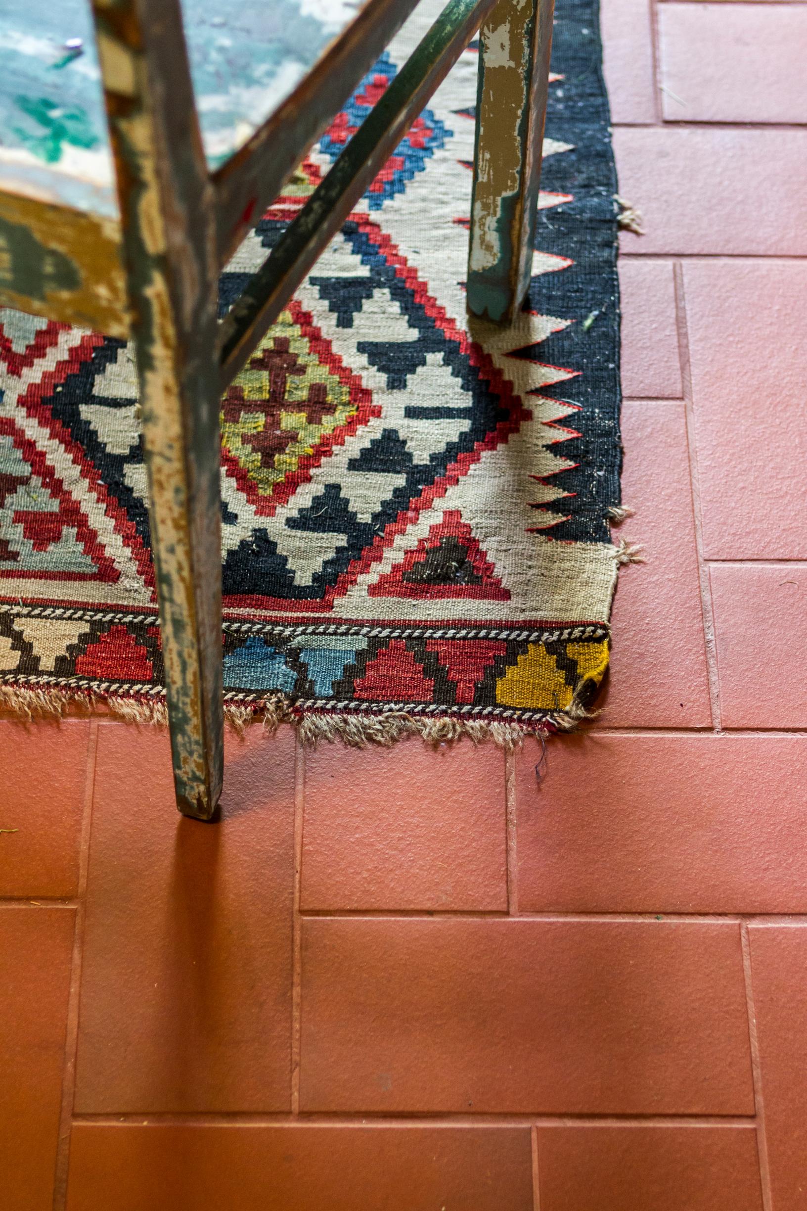 – Kaakeloimme tämän lattian ystävättäreni kanssa. Menihän se hiukan vinoon. Jatkossa muistan, ettei kalanruotokuvioon tehtävää laatoitusta tule aloittaa reunoilta, Nina Pulkkis sanoo ja nauraa.