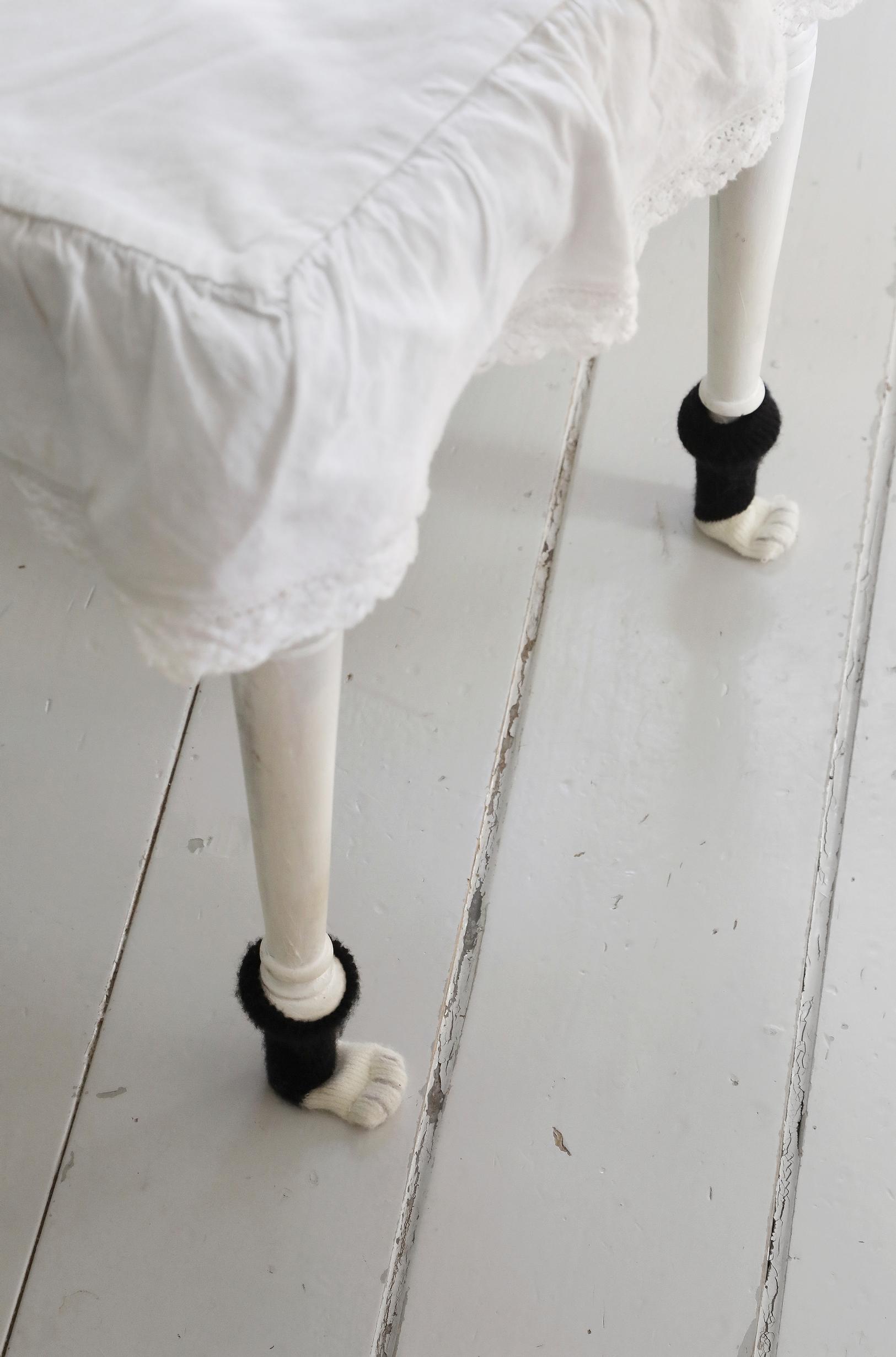 Annen ja Jarin kaksivuotias lapsenlapsi kysyi, miksi tuoleilla on sukat. Koska lattiat ovat kylmät, Anne vastasi. Tuolinjalkojen sukat on tilattu vuosia sitten ulkomailta. Ne ovat koristeita ja saavat tuolit liukumaan nätisti paljaalla puulattialla.