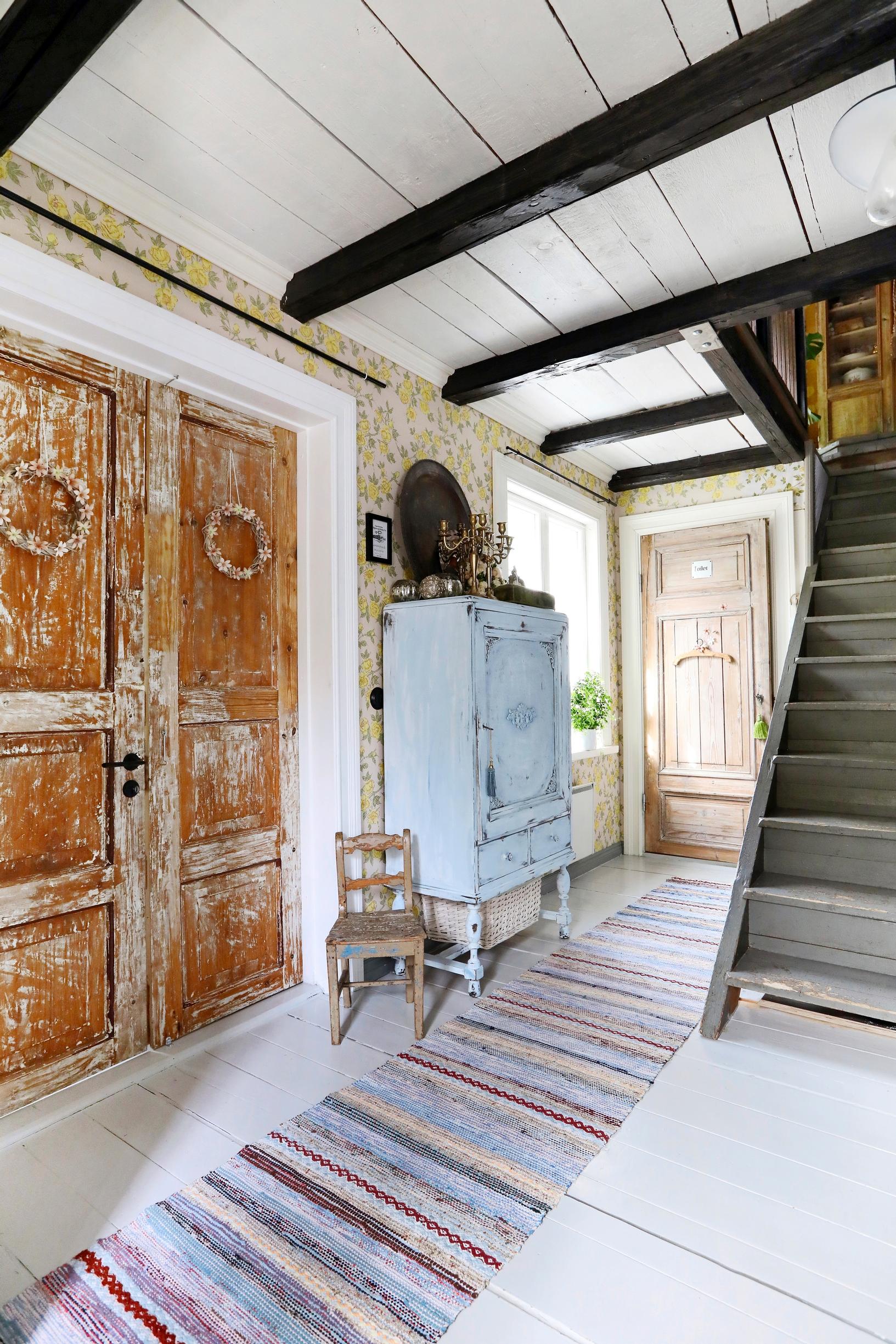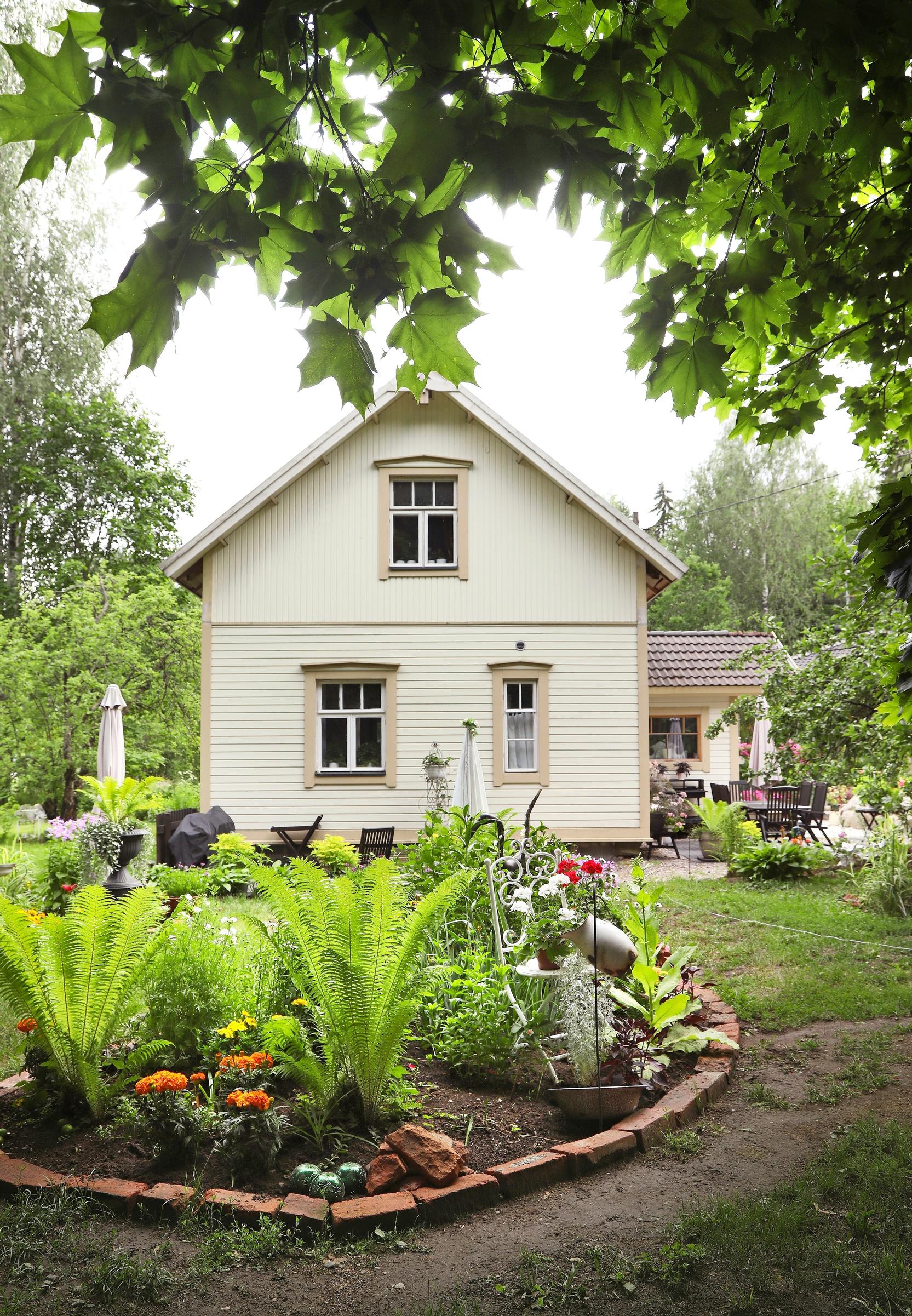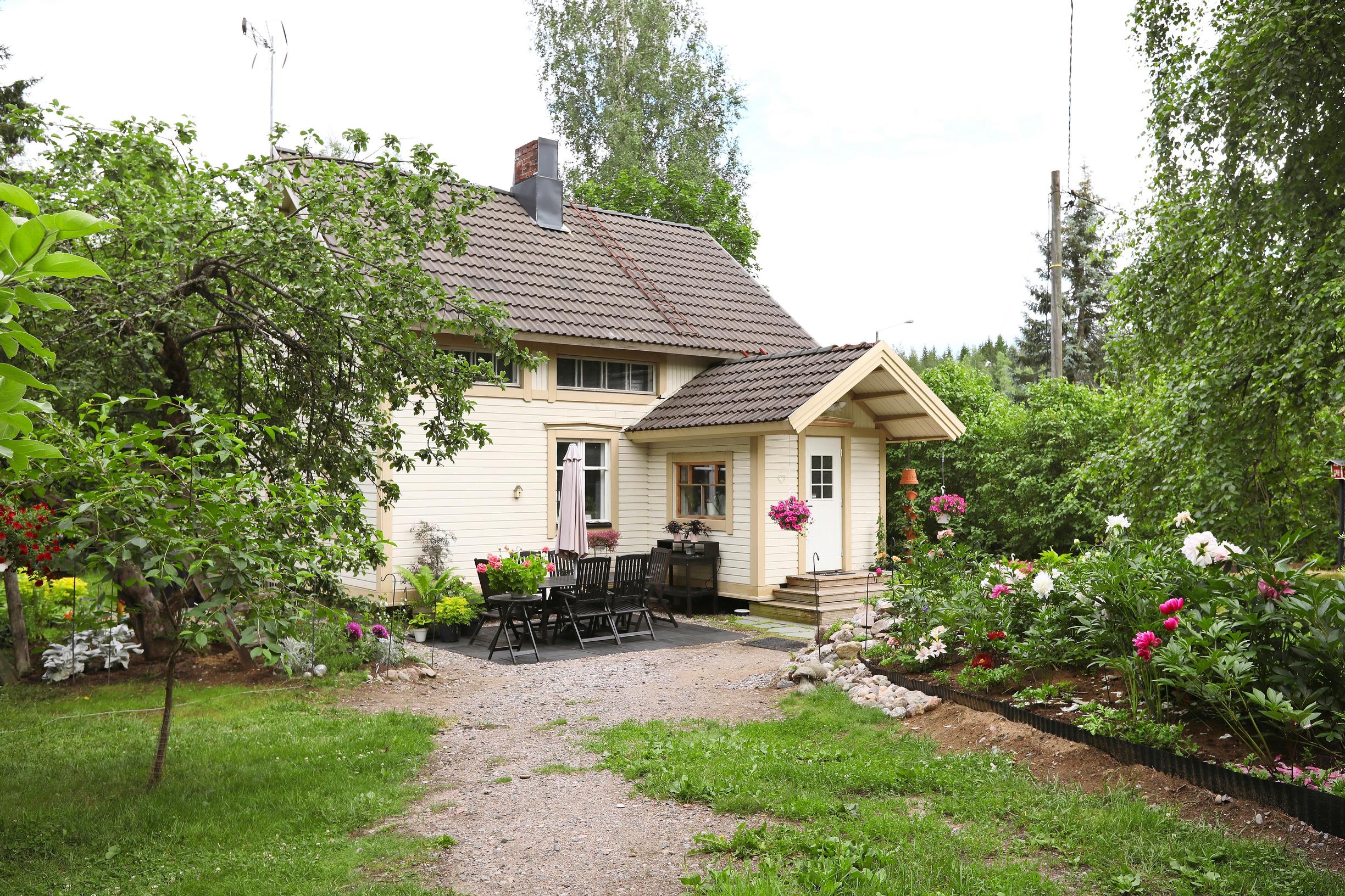 – Hassultahan se kuulostaa, mutta näin on käynyt ennenkin. Koska Jari ei ollut vielä tietoinen löydöstäni emmekä olleet edes käyneet paikalla, varauduin myös pettymykseen. Talon nähtyäni innostuin entistä enemmän. Edes hoitamaton piha ja romuvarastot eivät säikäyttäneet minua. Järjestystä rakastavaa Jaria sekamelska hieman ahdisti, ja hänelle tärkeä autotalli puuttui kokonaan. Vuokraemäntä osoittautui kuitenkin aivan ihanaksi ihmiseksi ja toivotti meidät tervetulleiksi taloon, Anne kertoo.
