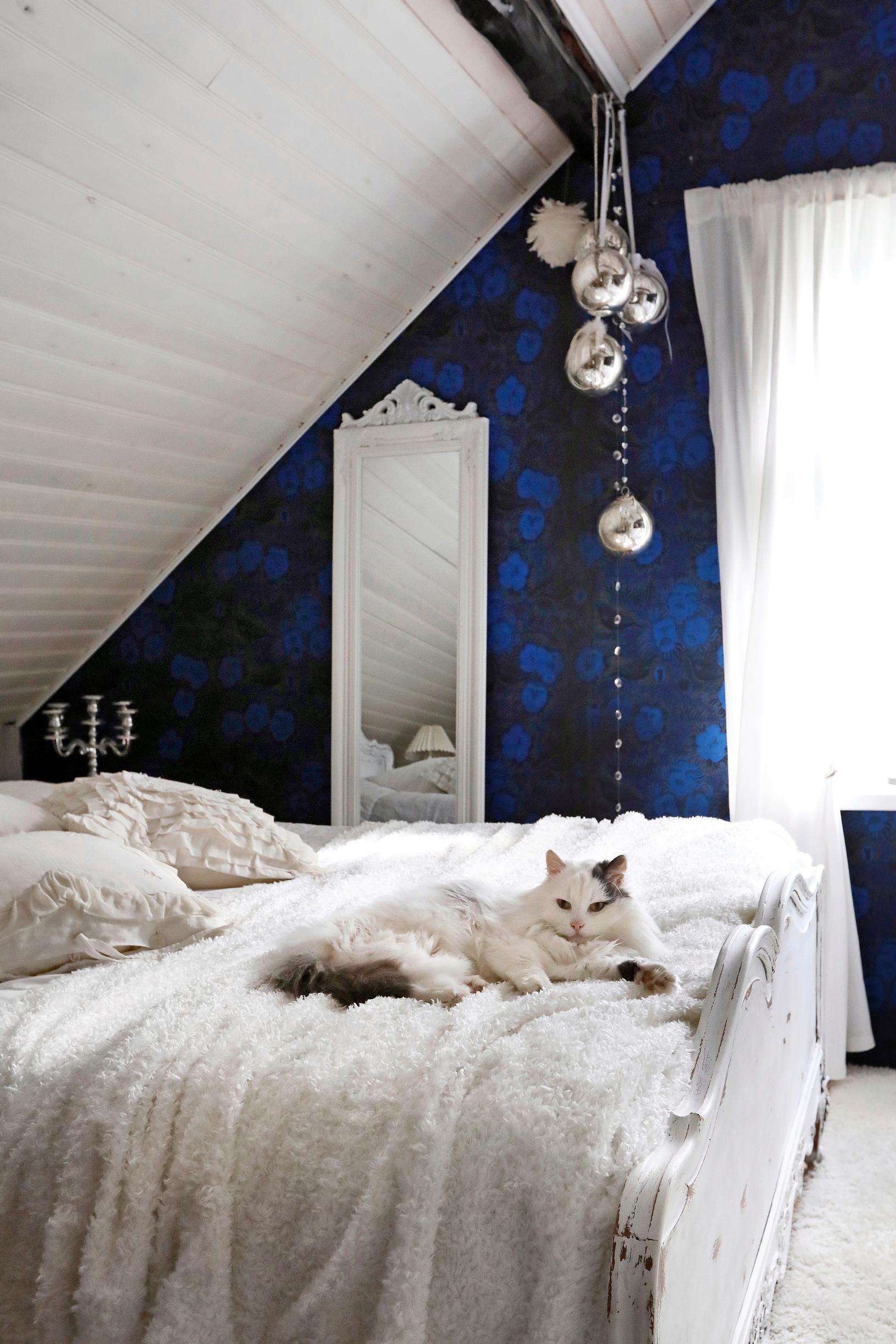 Vinokaton alla on kodikasta uinua. Annen maalaama sänky on Tori.fistä. Hakumatkaa tuli melkein tuhat kilometriä. Tapetti on Pihlgren ja Ritolan Kiurujen yö.