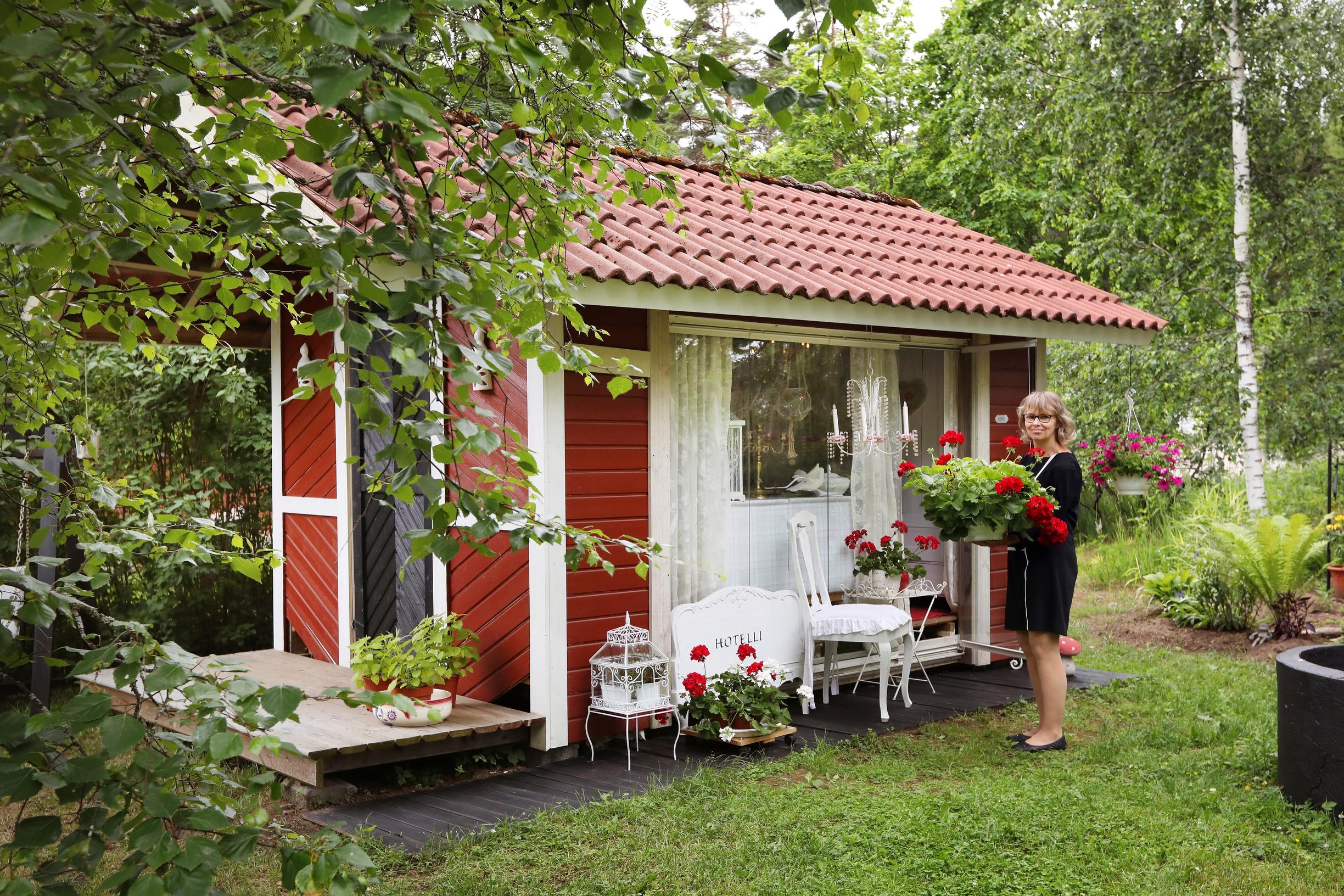 Piharakennuksessa toimii yhden huoneen kotihotelli. Anne teki sen hulluttelumielessä kesävierailleen.