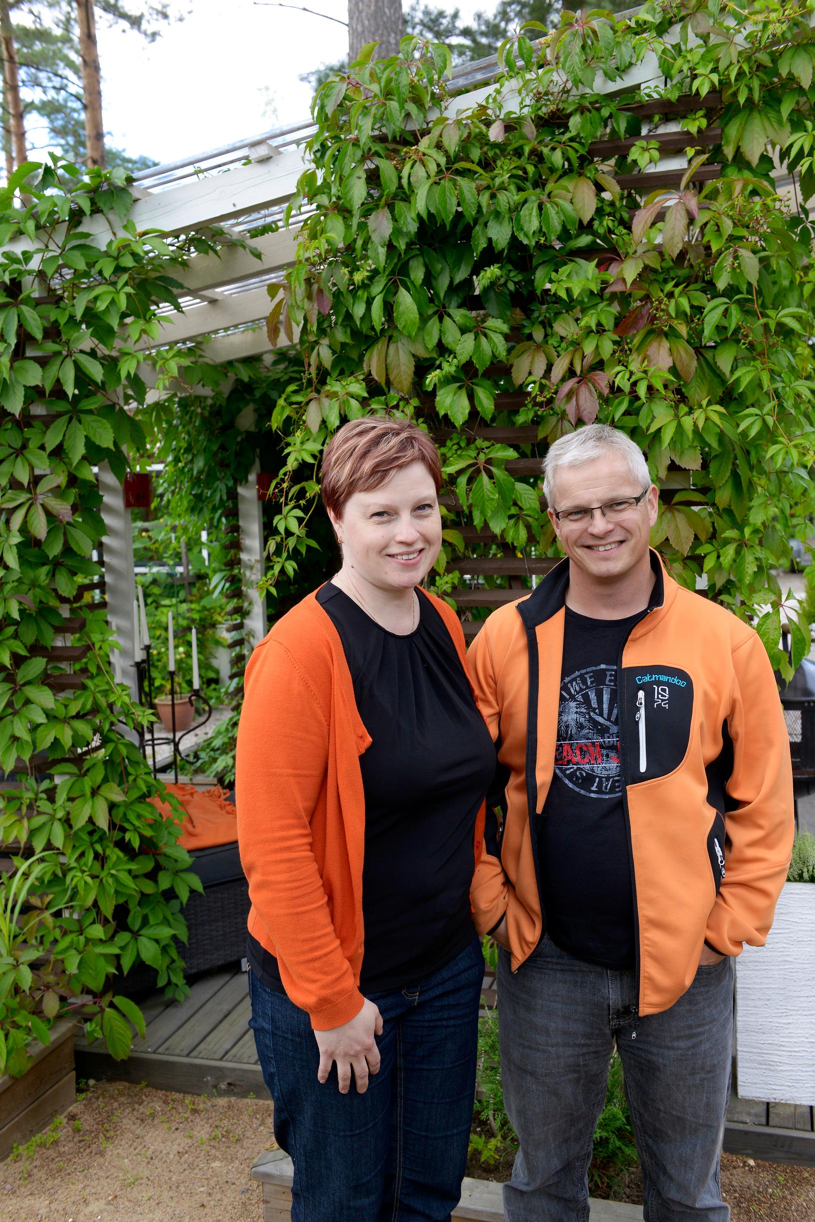 Puutarha on Erikalle ja Jaakolle paikka, jossa pääsee toteuttamaan ideoitaan. Konkreettinen käsityö rentouttaa.