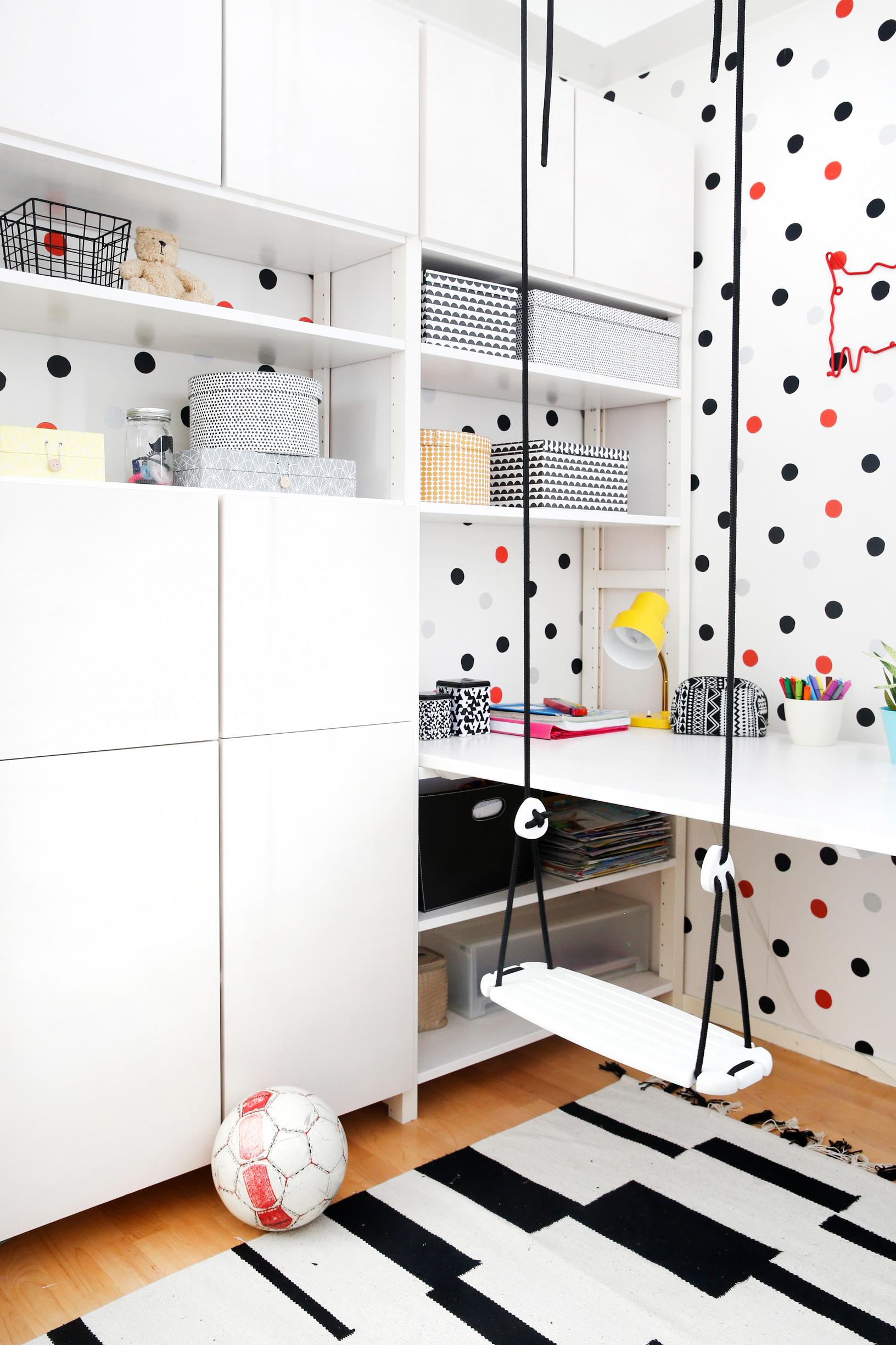 Järjestykseen tarvitaan kaksi asiaa: kaikille tavaroille on oma paikka ja että tavarat laitetaan käytön jälkeen paikoilleen. Nämä ideat lastenhuoneen säilytykseen ovat niin toimivia, että ne saattavat innostaa lapsetkin siisteyden ystäviksi.