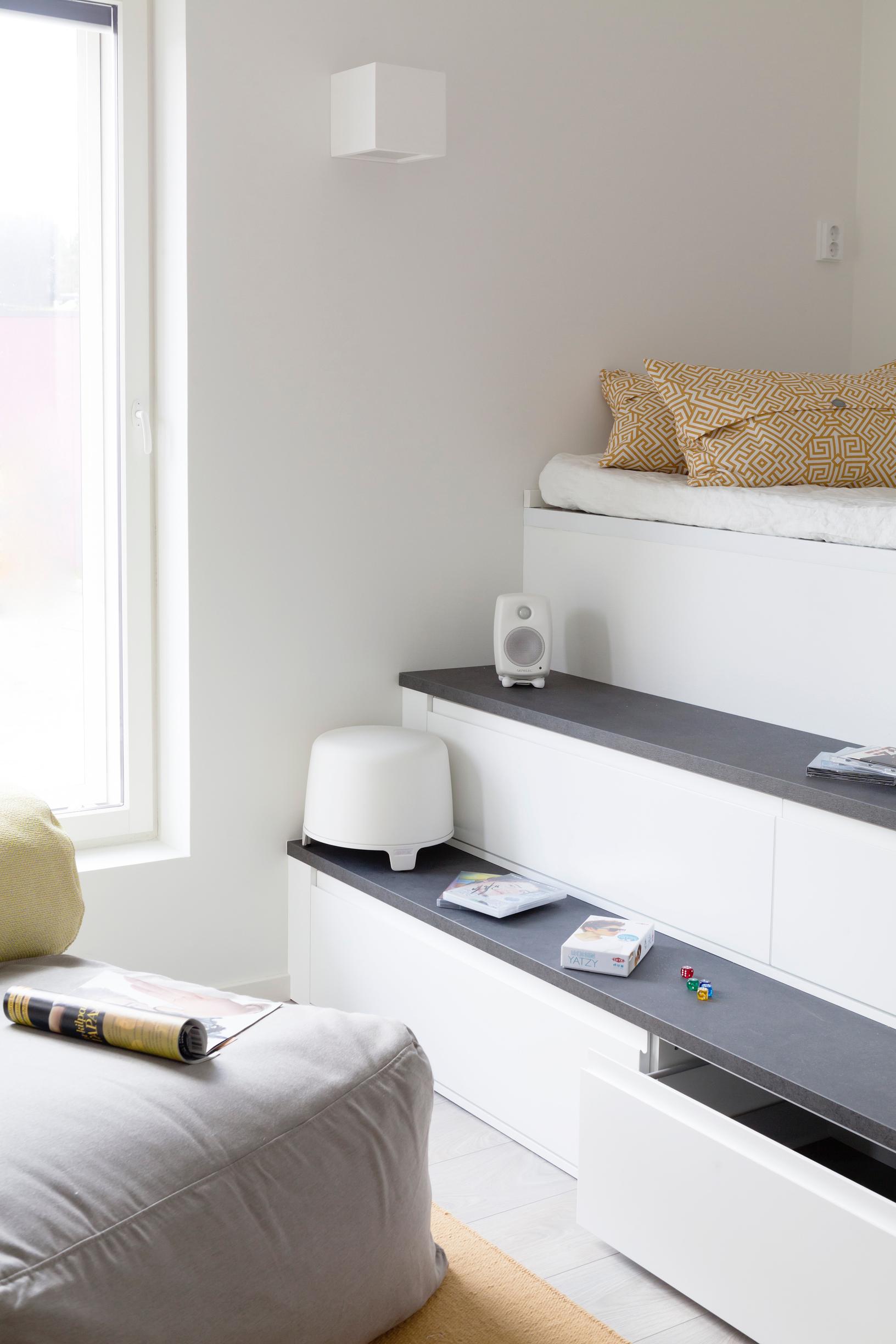 Puuseppä osaa valmistaa toiveidesi mukaisen monitoimikalusteen. Tässä yhdistyvät sänky, säilytystaso, penkki ja tilavat vetolaatikostot. Nerokasta!