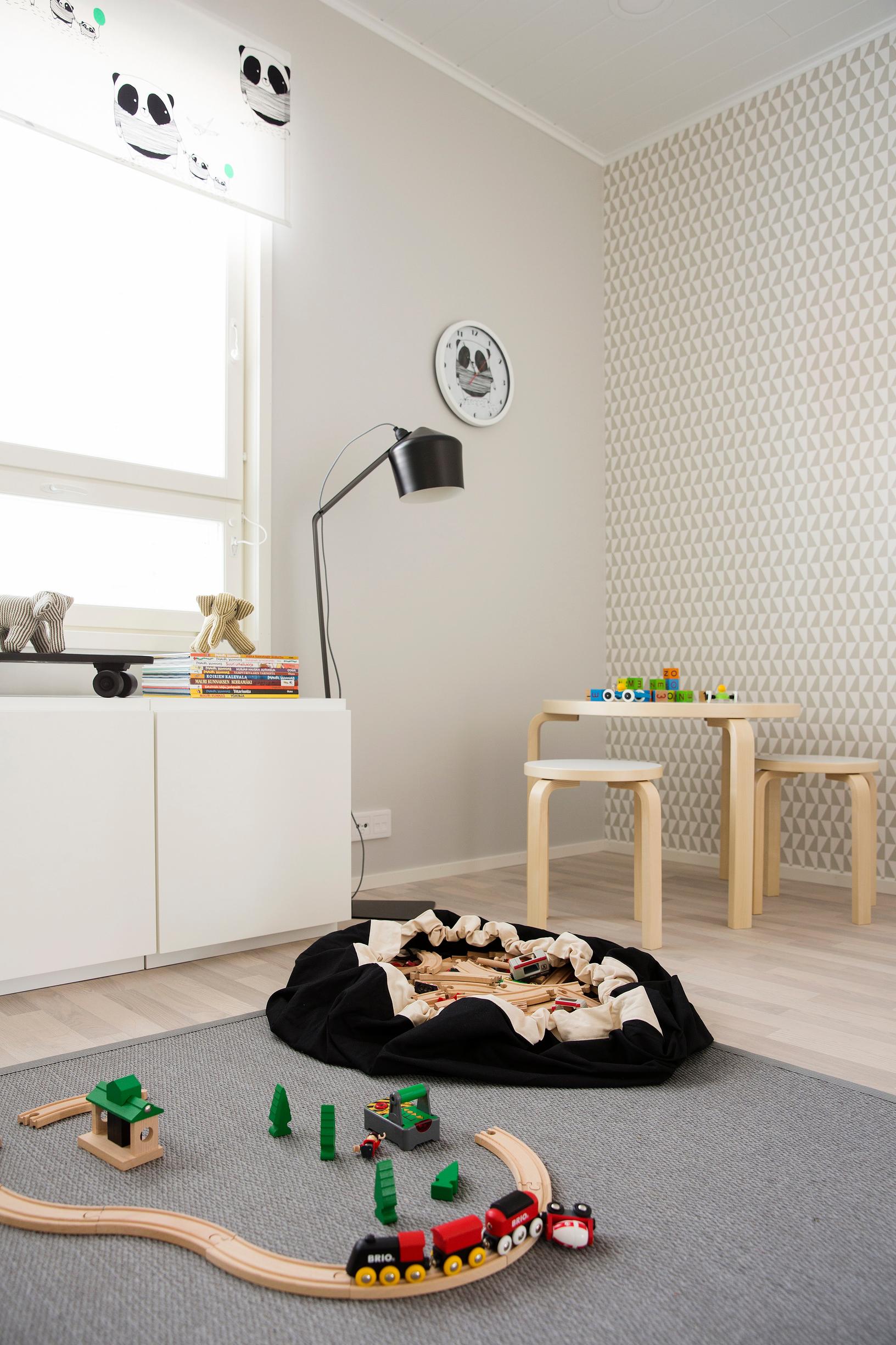 Minimalistivanhemman valinta on koko seinän levyinen ja kattoon asti ulottuva umpinainen kaapisto, johon saa upotettua aivan kaiken irtonaisen. Erinomainen valinta maksimoida myös pienen huoneen leikkimistila.