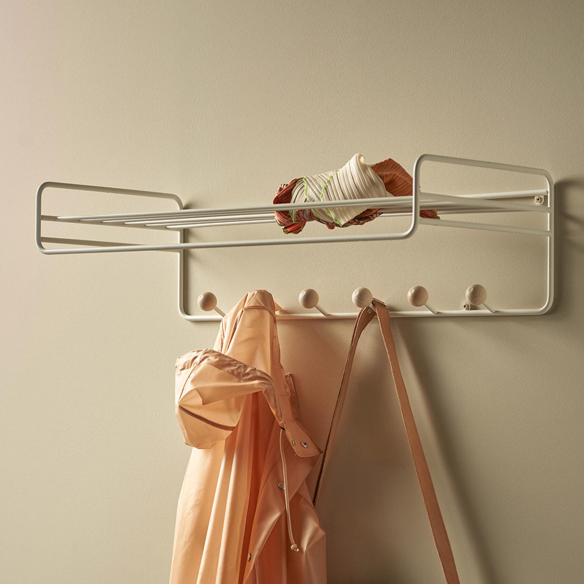Hattuhylly pääsee loistamaan erityisesti pienessä eteisessä. Koukkuihin voi ripustaa päällystakit ja hyllyn päältä löytyy tilaa muuhun säilytyksen. Ruotsissa valmistettu Maze Interiorin Bill-hattuhylly on palluroineen leikkisä lisä sisustukseen.