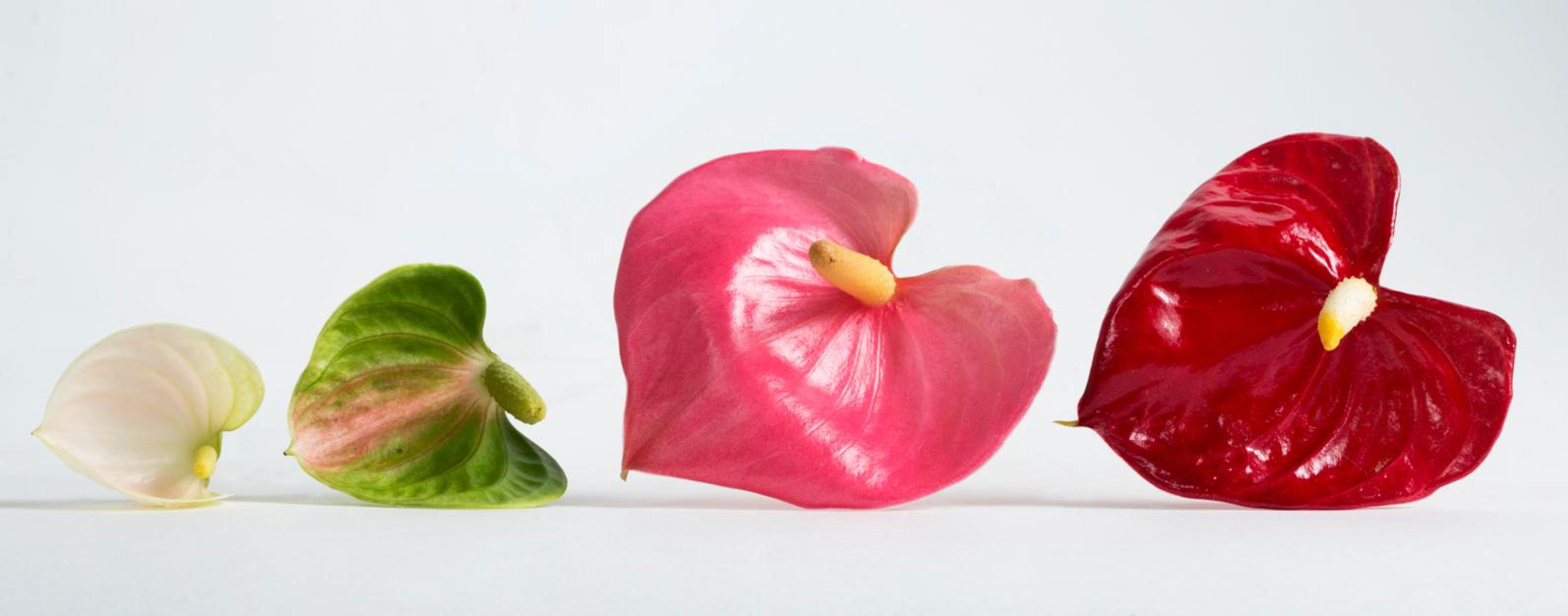 Flamingokukat (Anthurium) valloittavat värikkäillä vahamaisilla kukinnoillaan, joiden väri vaihtelee räiskyvän punaisista hillityn vaaleaan.