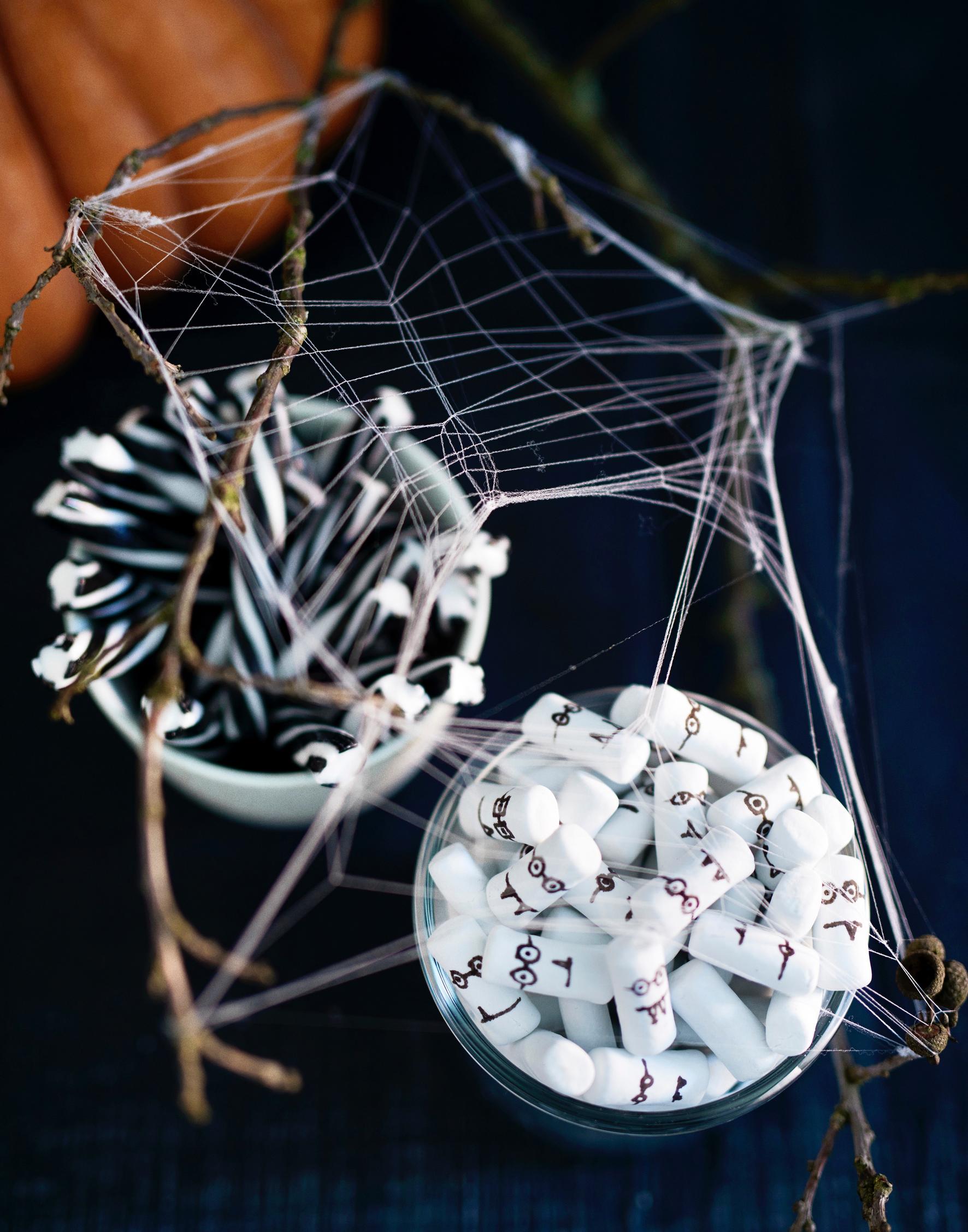 Halloween-juhlat voivat alkaa, kun koristeet ovat valmiit ja herkut pöydässä! Leikissä haamupiñataa lyödään mailalla silmät sidottuina, ja seurauksena on karkkisade! Tee myös lakuvampyyrit, marenkinaamat ja muut hirmuiset karkit apunasi vain elintarviketussi.