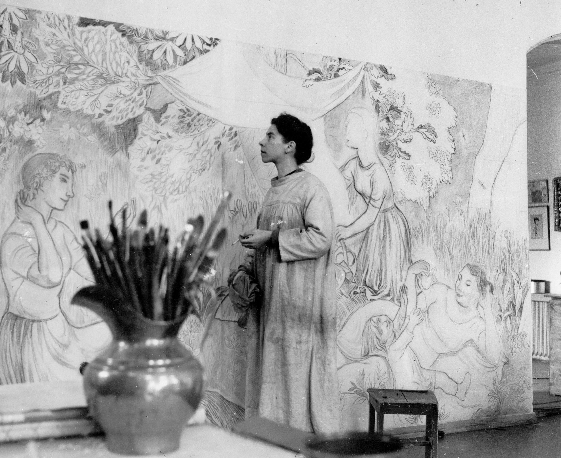 Suurissa teoksissa ja niiden esitöissä on niin ihmishahmoja kuin muita hahmoja, monenlaisia eläimiä ja kasveja. Muumi ja muumit saattavat ilmestyä esiin mistä tahansa, niin salaiseen puutarhaan, tanssiaisiin kuin lumottuun laaksoon. Juhlat kaupungissa -freskoon Jansson maalasi paitsi muumipeikon myös itsensä, ystäviään ja oman rakkaansa.