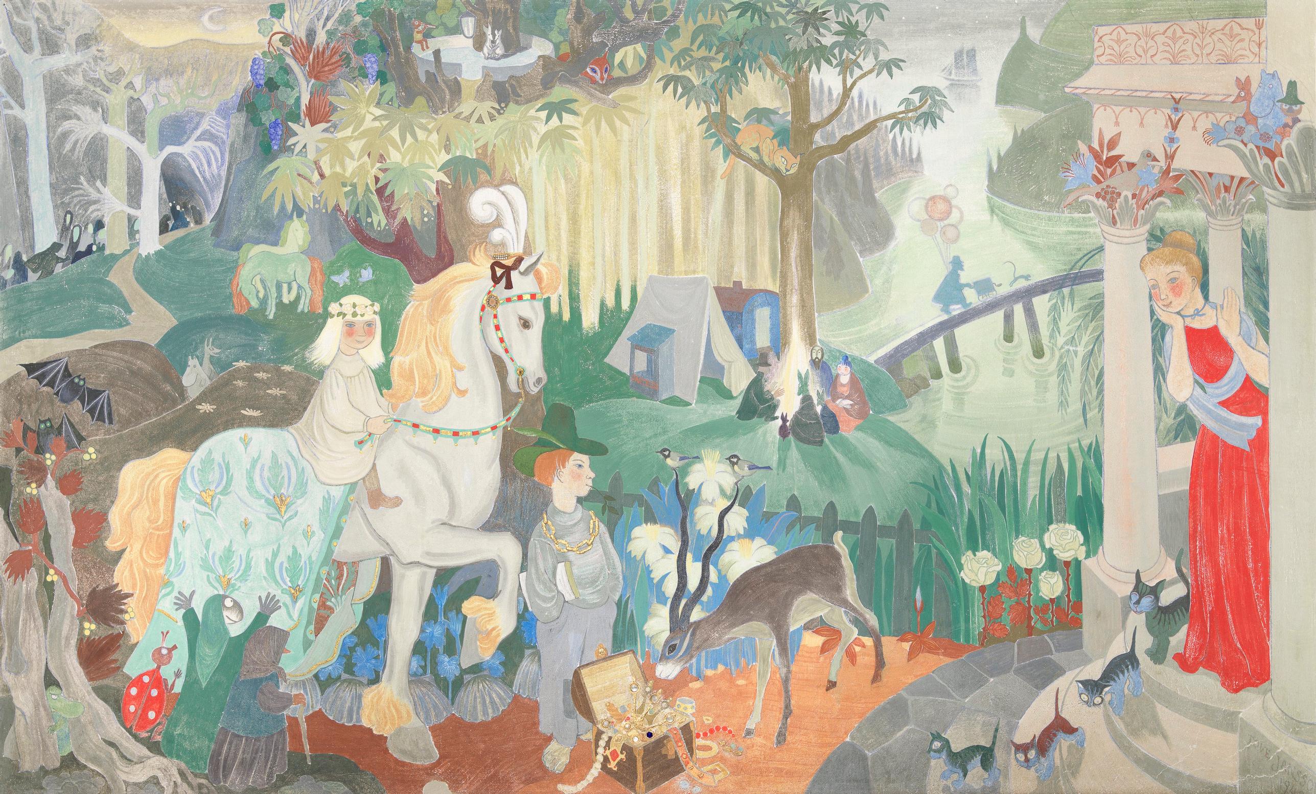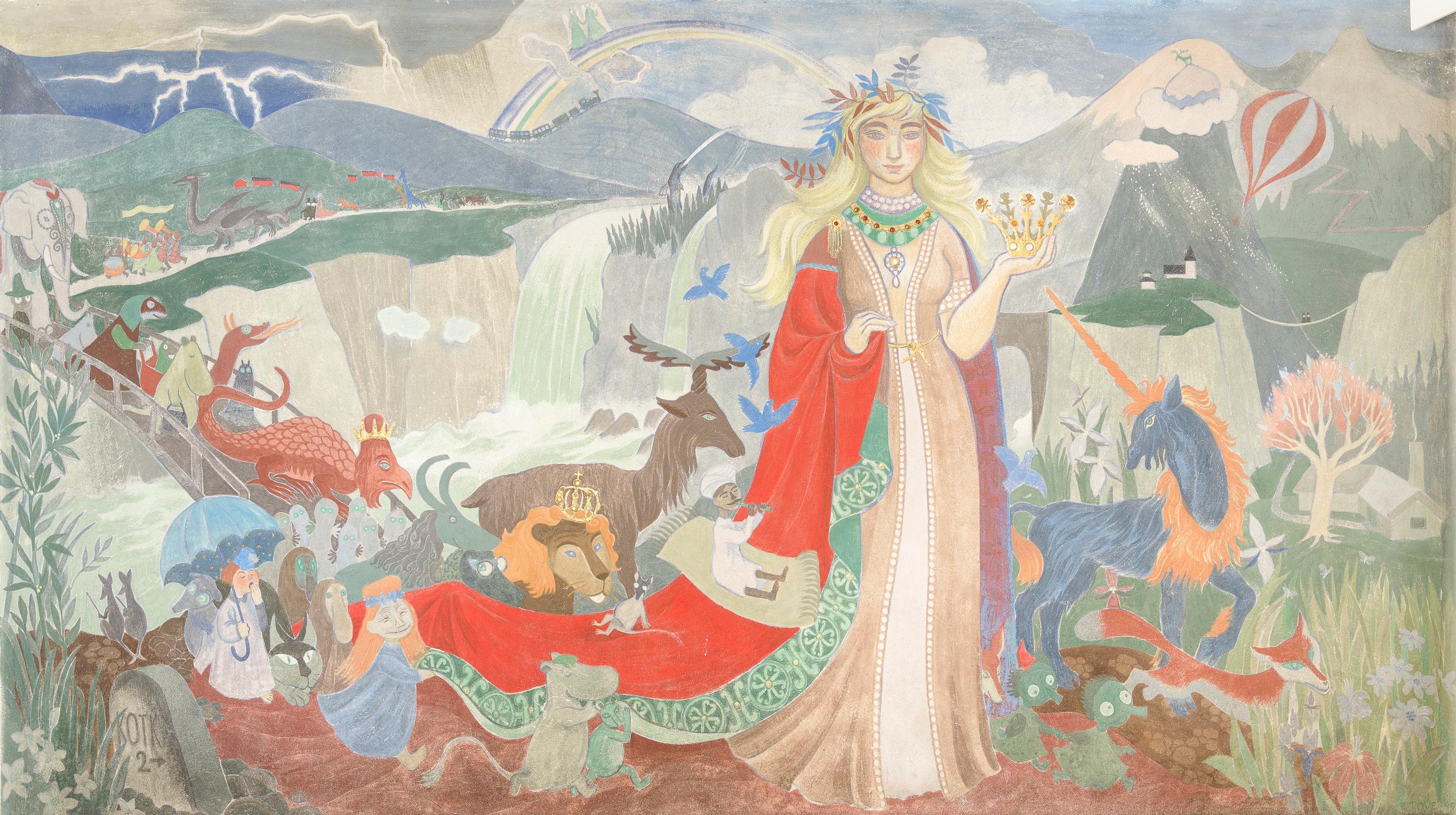 Näyttelyssä tekee mieli kysyä, tekikö Tove Jansson tosiaan kaiken tämän itse. Ja oliko hänen onnelliseksi kuvaamansa maailmat ja toiset todellisuudet niitä, joihin hän mieluiten pakeni sotaa, sodan uhkaa ja muita elämän perusturvaa järkyttäviä asioita? Teokset syntyivät pitkälti 1940-luvulla ja 1950-luvun alussa, vaikka niiden ydin löytyy jo Tove Janssonin 1930-luvulla maalaamista pienemmistä kuva-aiheista.