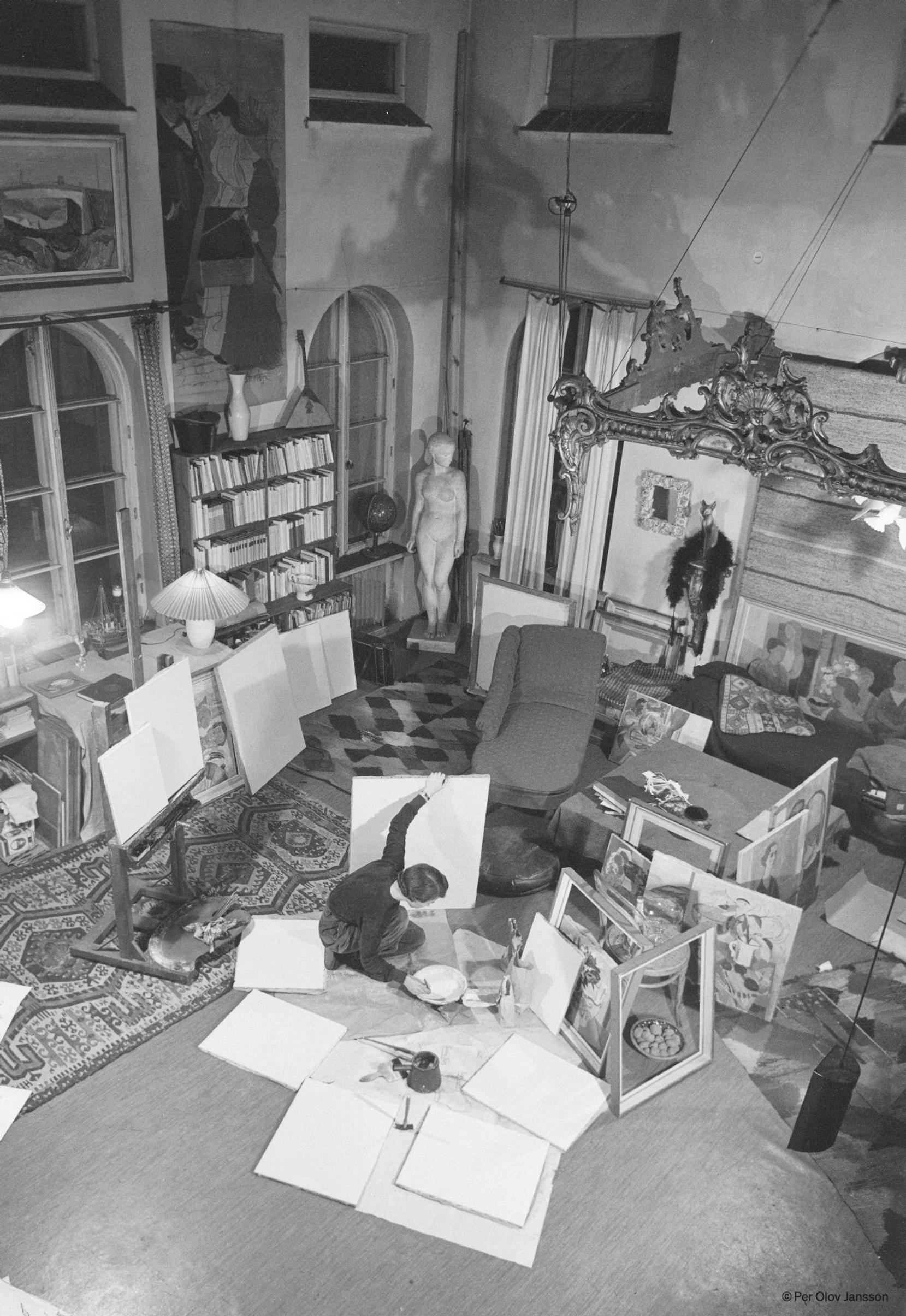 On hämmästyttävää, miten hallitusti Jansson on sommitellut laajat kuva-aiheet. Esityöt hän teki ateljeessaan, joista viimeinen ja tunnetuin on Helsingin Ullanlinnassa sijaitseva tornihuoneisto.