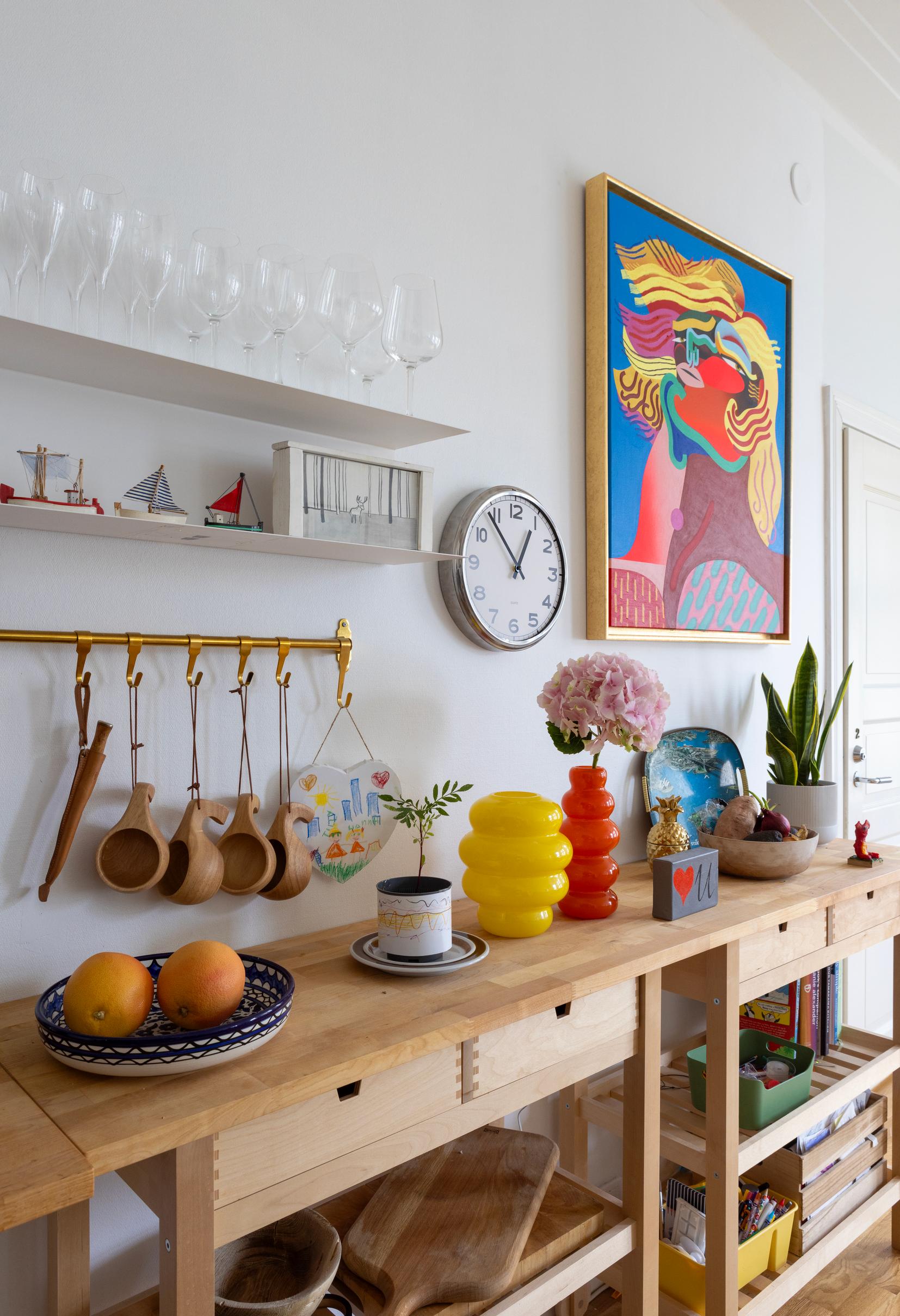 Hannah: Vaikka kodin seinät ja asuinmaat ovat vaihtuneet, niin kodintunne on pysynyt samanlaisena, koska olemme kuljettaneet tavaroita ja taideteoksiamme mukanamme. Tavanomaisempien matkamuisto-ostosten sijaan teemme taidehankintoja, ja moniin teoksiin liittyy tarina tai muisto.