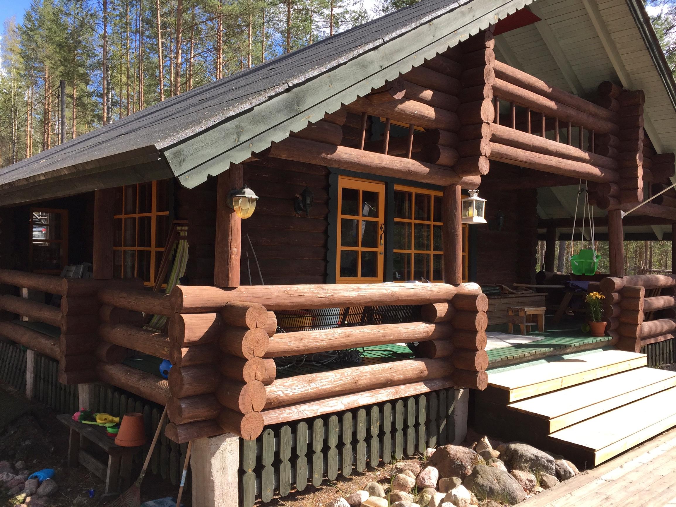 "Kätevä isoisäni onnistui 1970-luvun lopulla löytämään hienon mökkipaikan perheelleen. Heinolan hiljaisiin järvimaisemiin, sammaleen ja käkkärämäntyjen peittämään niemennokkaan nousi ensin saunamökki, kuten ajan tapana oli. Pari vuotta myöhemmin isoisä rakensi paikalle noin 55 neliön pyöröhirsimökin. Hän teki itse suuren osan myös huonekaluista.