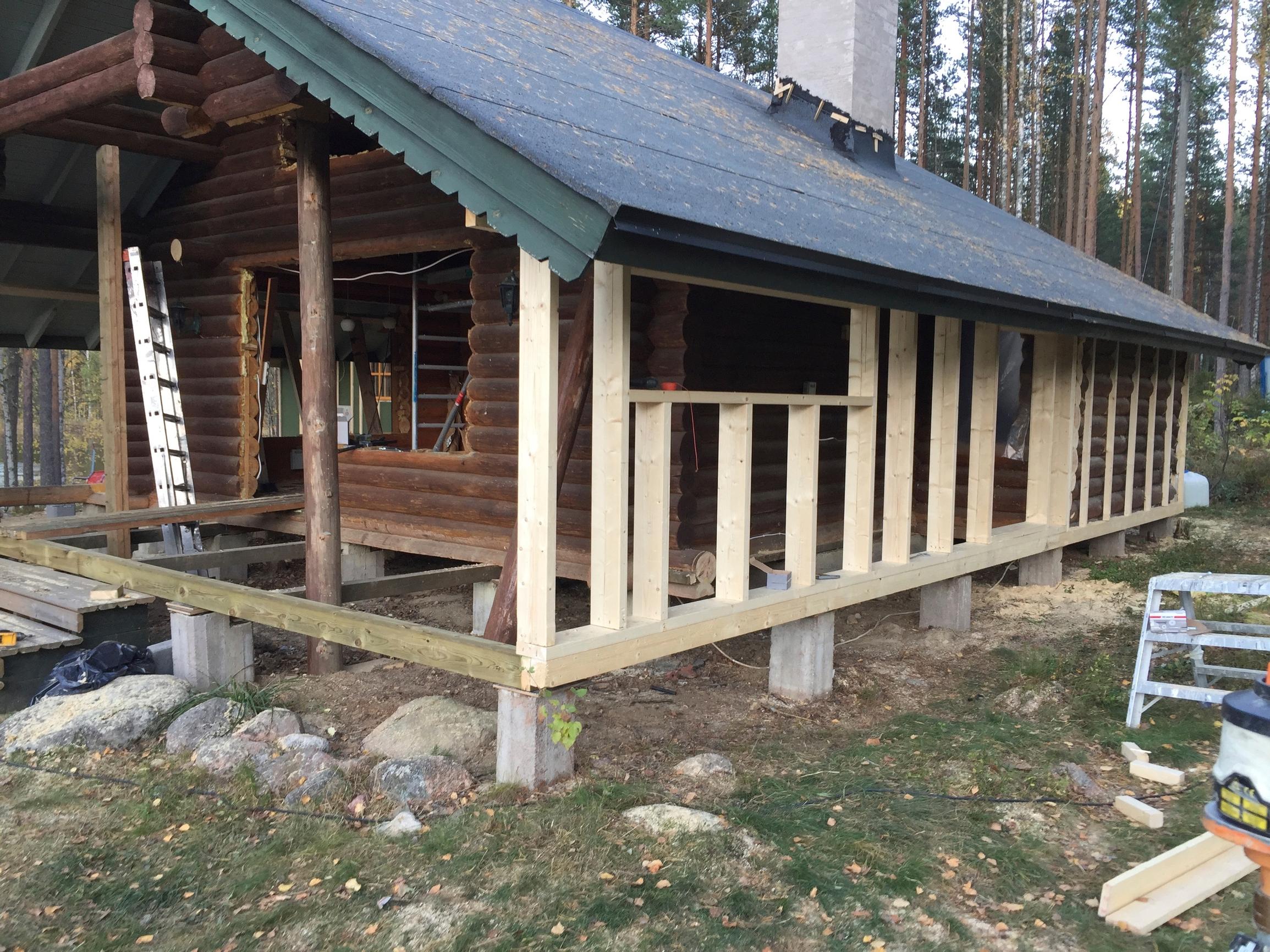 Laajennus oli pääosin valmis jo jouluna 2016. Seuraavana keväänä sukulaisemme ja tuttavamme pääsivät auttamaan mökin viimeistelyssä ja sisätilojen kalustamisessa. Kesän lomassa terassit valmistuivat sisätilojen jatkeeksi. Samalla laudoitimme myös alakatot ja aloitimme pihatyöt.