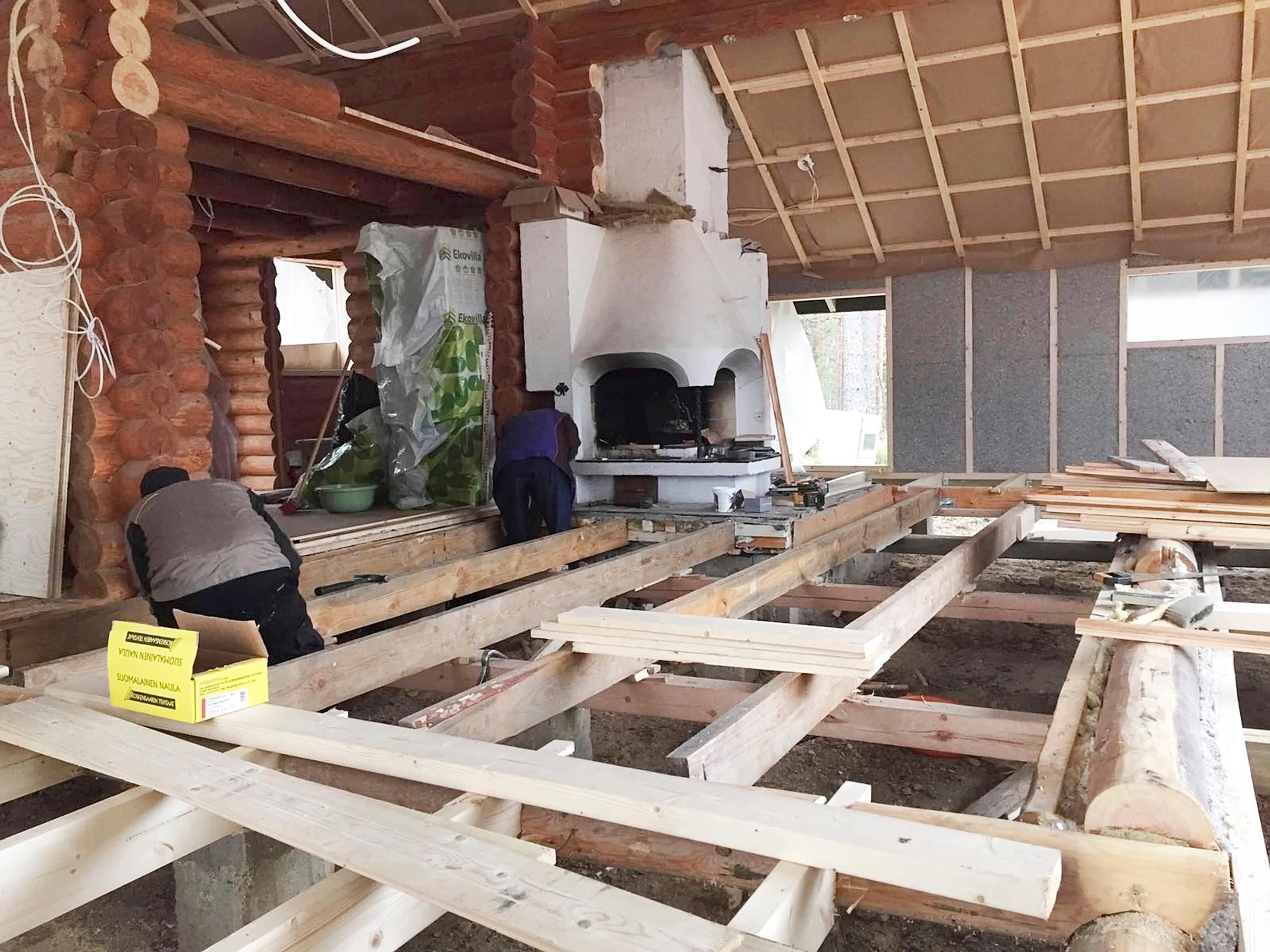 Katon lappeen noston lisäksi konstikkaampi vaihe oli vanhan hirsirungon jäykistys. Urakoitsija uumoili, että työtä oli hieman arvioitua enemmän. Hirret olivat kuitenkin onneksi terveitä. Olemassa olevia rakenteita voitiin hyödyntää, koska pohjan pilarit oli tehty hyvin eikä routa ollut niitä liikutellut.