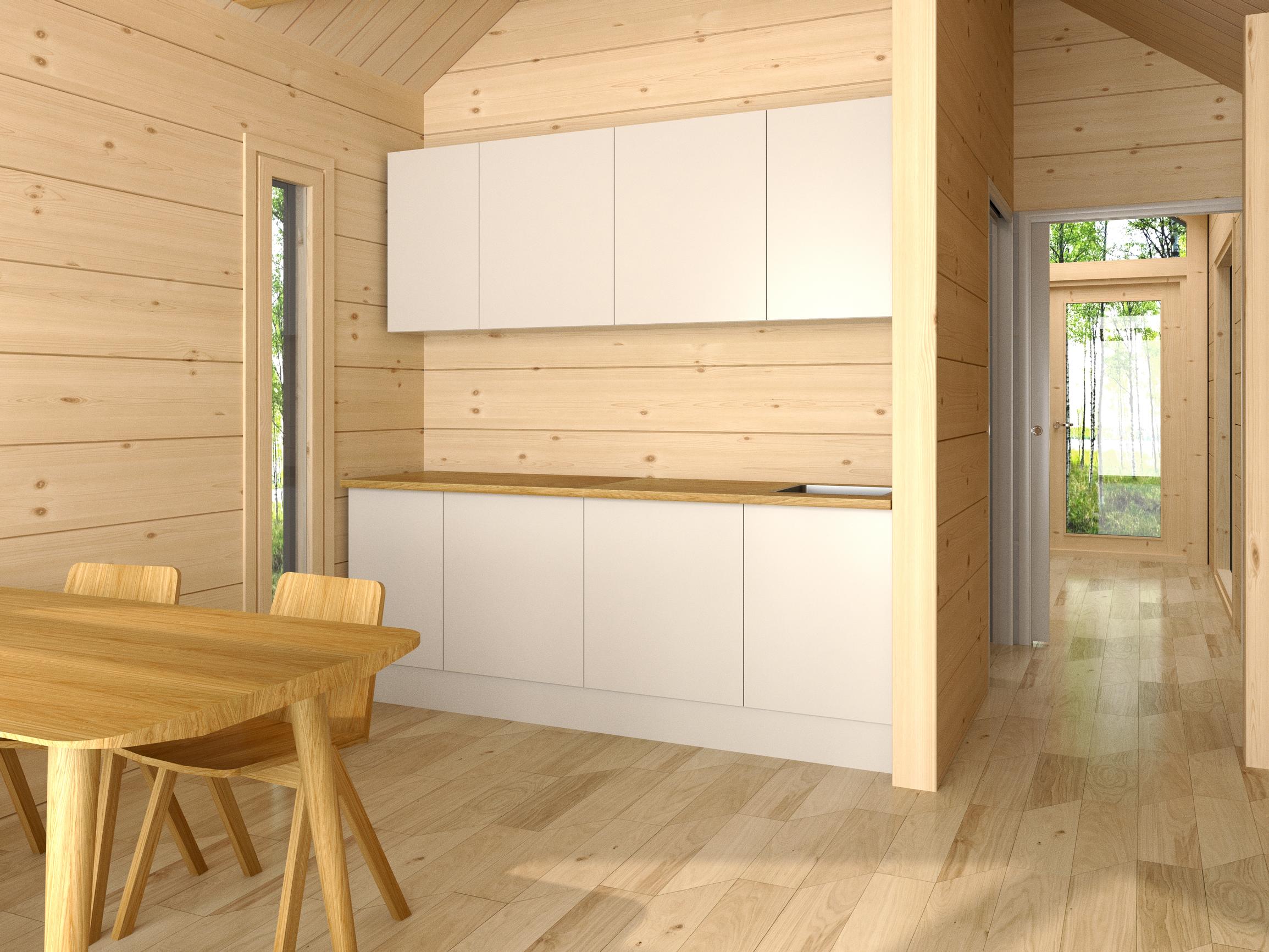 Suunnittelija kertoo, että hänellä on syntynyt lämmin suhde hirteen jo nuoruudessa, kun hän rakensi opiskeluaikanaan hirsitaloja setänsä kanssa. Yhteistyö käynnistyi tänä vuonna 60-vuotta täyttävän Honkarakenteen kanssa Koskisen lapsuudenmaisemissa Karstulan tehdasvierailulla.