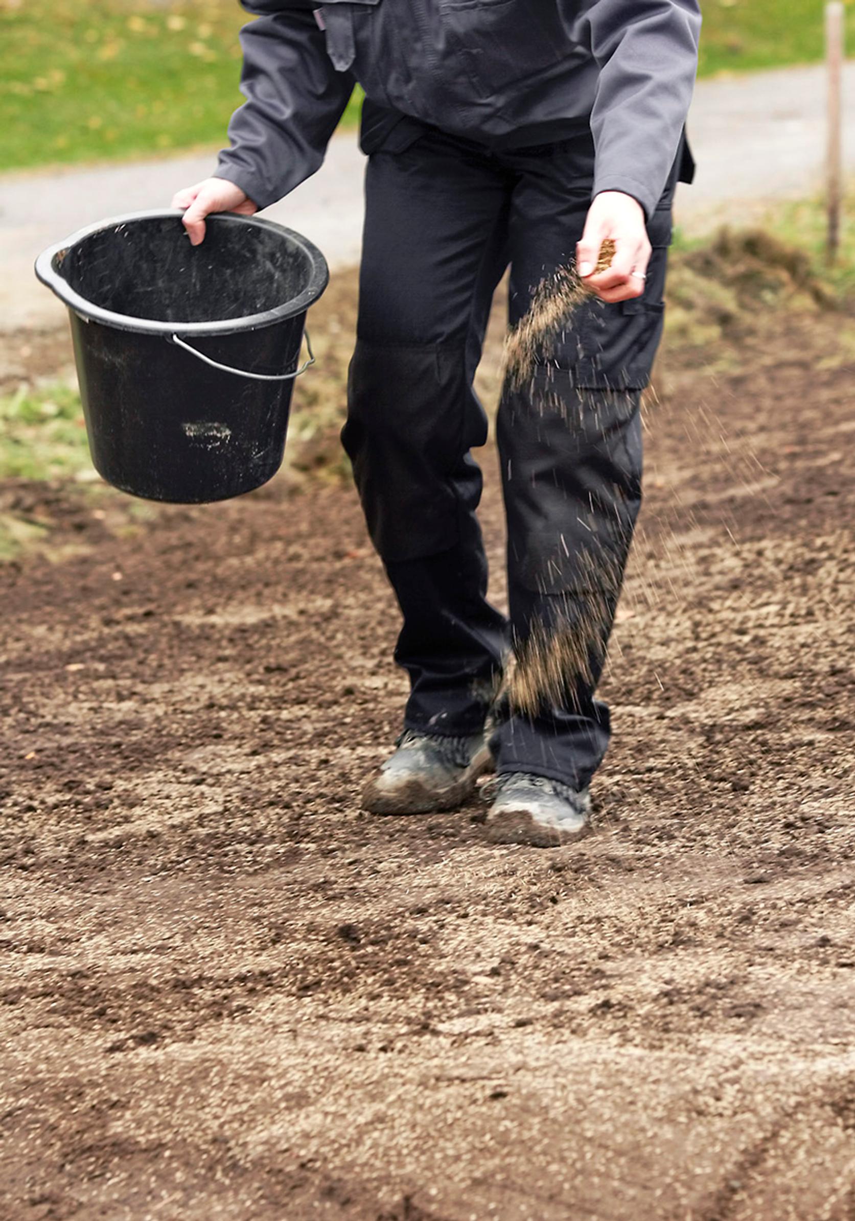 Ravistele nurmikkosiemenpussin sisältö sekaisin, sillä pienimmät siemenet karisevat pussin pohjalle. Jemmaa ylimääräiset siemenet paikkauksia varten. Kuivassa paikassa niiden itävyys säilyy hyvänä viitisen vuotta.
