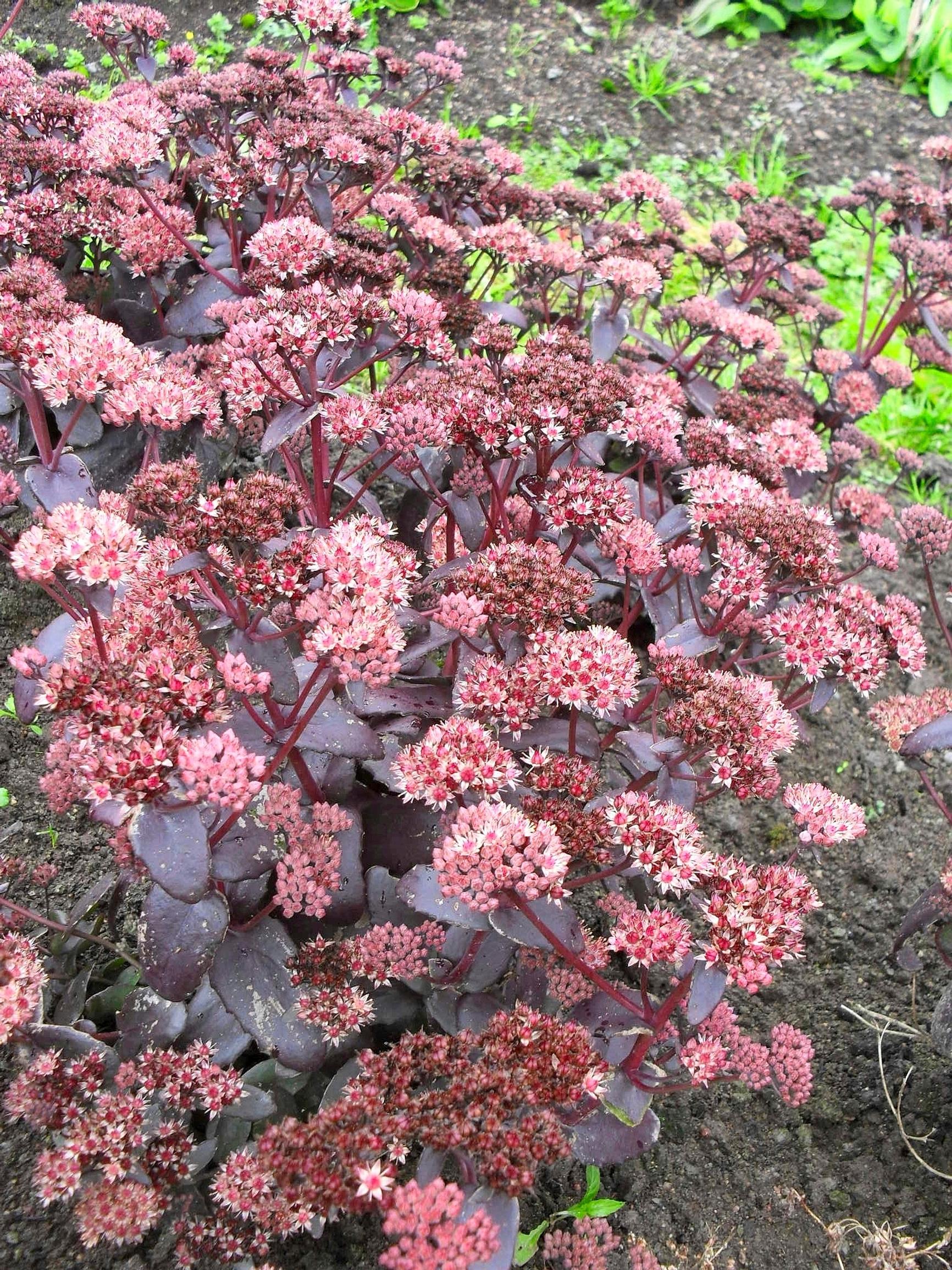 Komeamaksaruoho on loppukesän väriläiskä. Erityisesti tummalehtiset lajikkeet tuovat näyttävyyttä ja kontrastia perennaryhmiin ennen kukintaakin. Kuvassa ’Purple Emperor’, joka on kranttu viihtymään pohjoisessa Suomessa. Aurinko, 30–50 cm, 8–10.