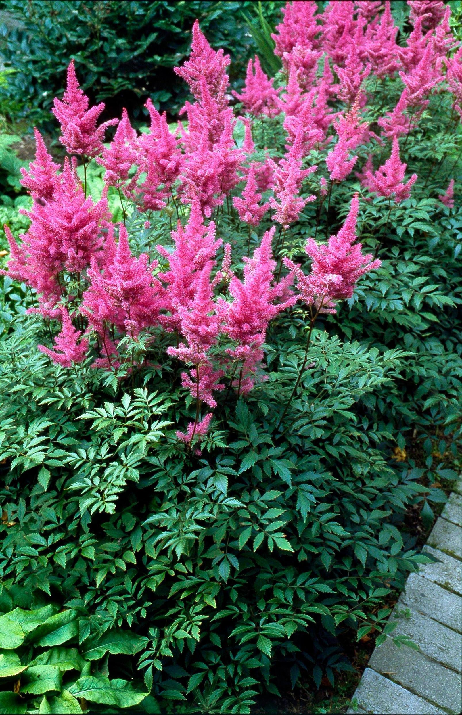 Jaloangervoista (Astilbe) saa loisteliaasti kukkivaa täytettä perennapenkkiin valkoisen ja punaisen eri sävyissä. Ne ovat parhaimmillaan puolivarjossa, mutta pärjäävät myös auringossa runsaassa, kosteutta pidättävässä kasvualustassa. Koko vaihtelee lajikkeen mukaan. Aurinko–puolivarjo, 40–100 cm, 7–8.