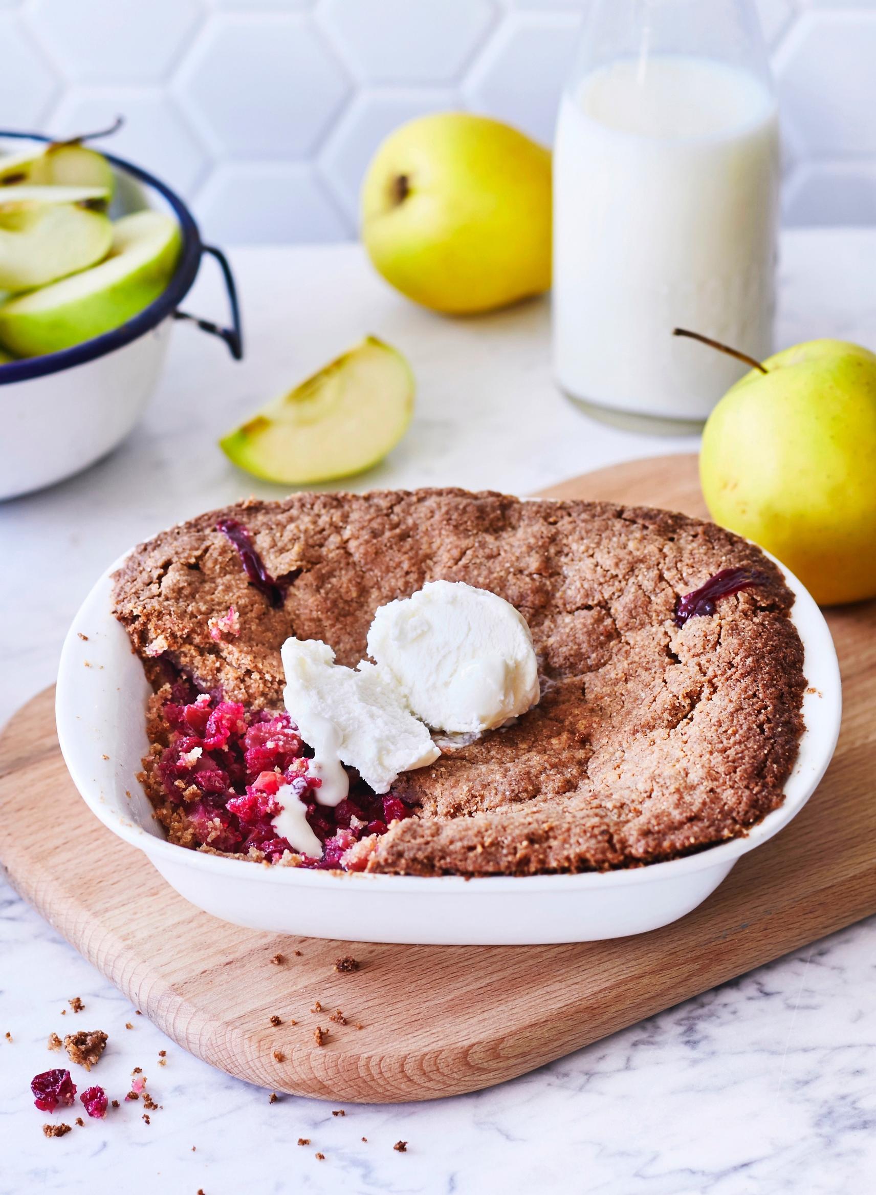 Savolaisesta rättänästä eli mustikkakukosta inspiroituneessa versiossa rapean ruiskuoren alle kätkeytyy sopivasti makea omena-puolukkatäyte. Vaniljakastike tai -jäätelö tasapainottaa hyvin hapokkaan jälkiruoan makua.