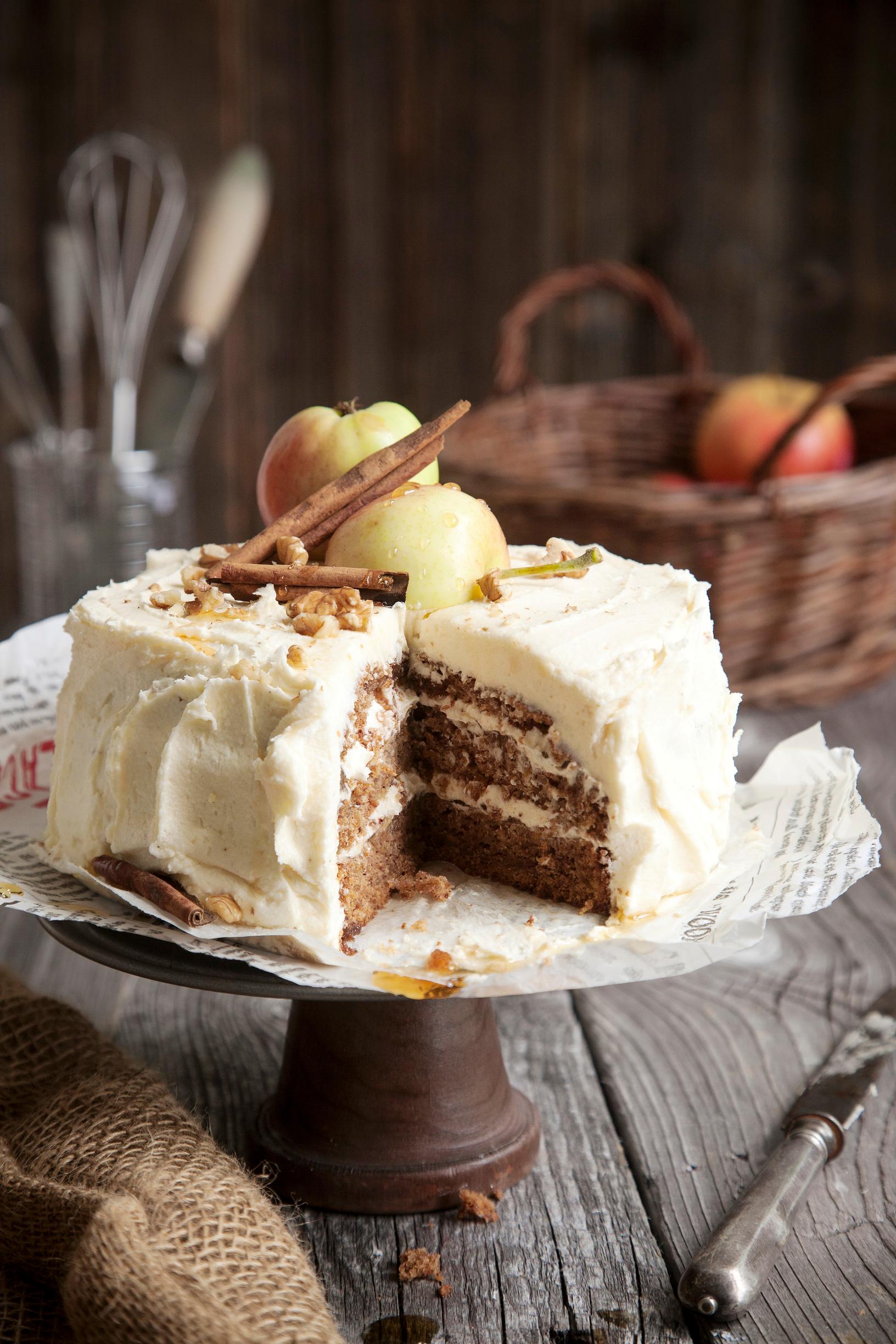 Satokauden kahvikestien tähti on oikeutetusti omenatäytekakku. Syksyisessä kakun maku on taatusti omenainen, sillä omenaa on täytteen lisäksi pohjassa. Vaahterasiirapilla maustettua voikreemiä sivellään kerrosten väliin ja kakun päälle. Tämän kakun maku vain paranee säilytyksessä, joten se kannattaa leipoa juhlahetkeä edeltävänä päivänä jääkaappiin tekeytymään.
