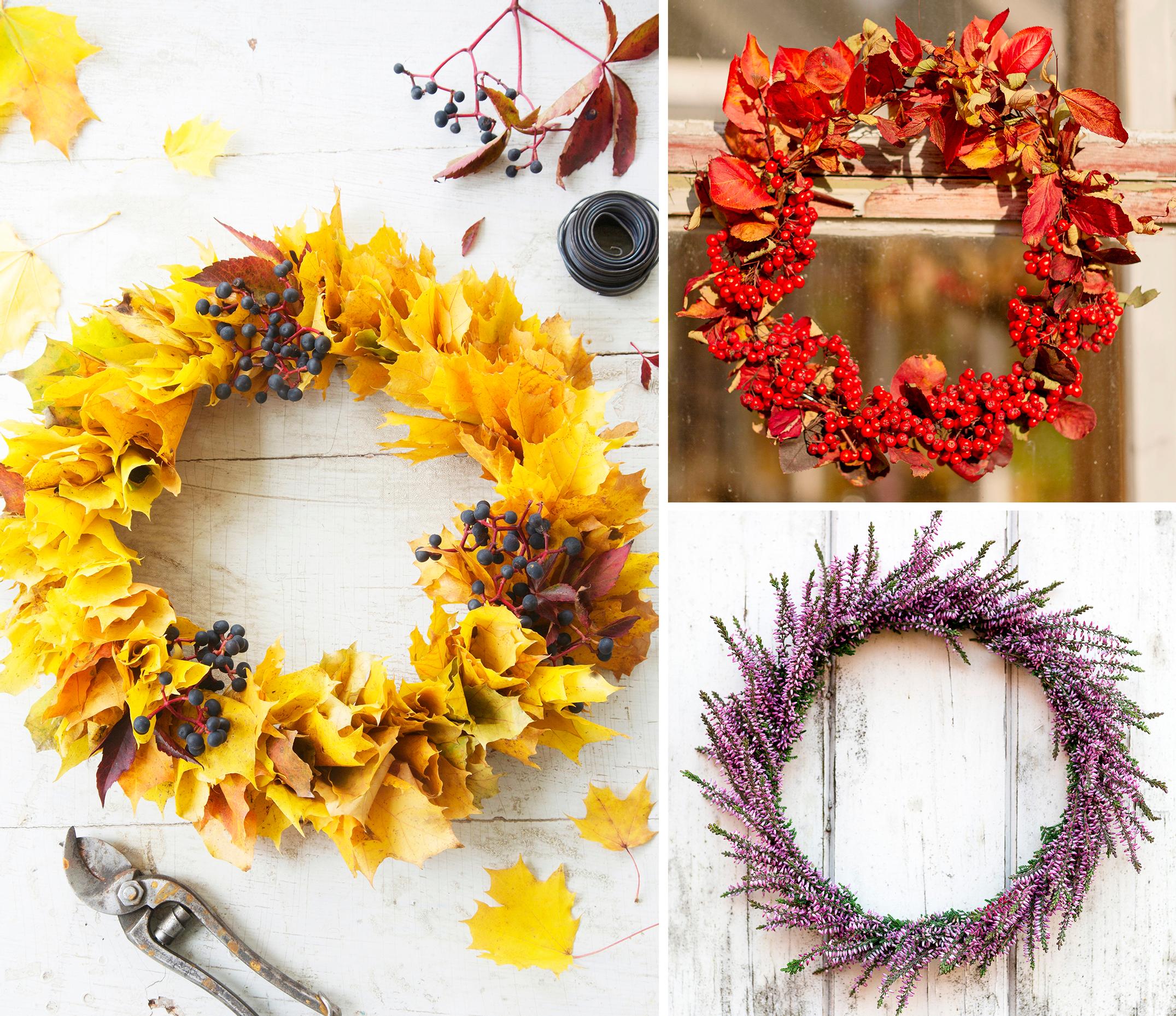6 × helppo syyskranssi – nämä upeat ovikoristeet valmistuvat hujauksessa