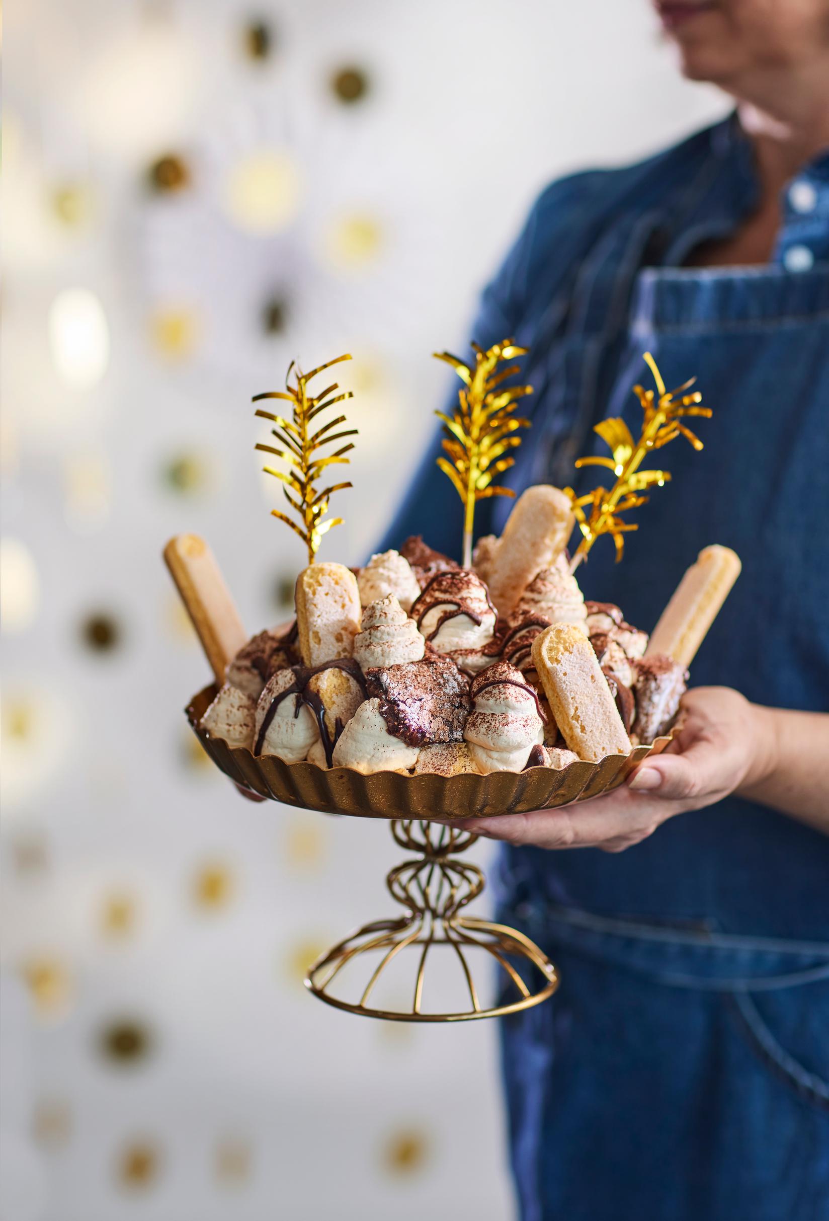 Tiramess on tiramisun ja Eton messin rakkauslapsi. Kahden jälkiruoan yhdistelmä on sopivasti överi ja siksi täydellinen uudenvuodenjuhlien herkku. Superhelppo jälkkäri kootaan mascarponevaahdosta, valmiista mutakakusta, suklaakastikkeesta ja savoiardikekseistä. Voit tehdä tiramessin tuntia tai paria ennen juhlia jääkaappiin tekeytymään.