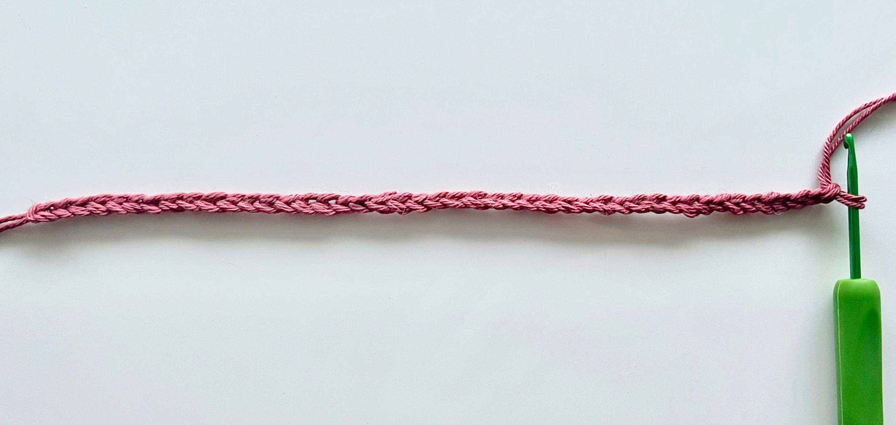 1. Virkkaa aloitusketjuksi 45 kjs. Virkkaa vielä 2 ylimääräistä kääntösilmukkaa. Käännä työ.