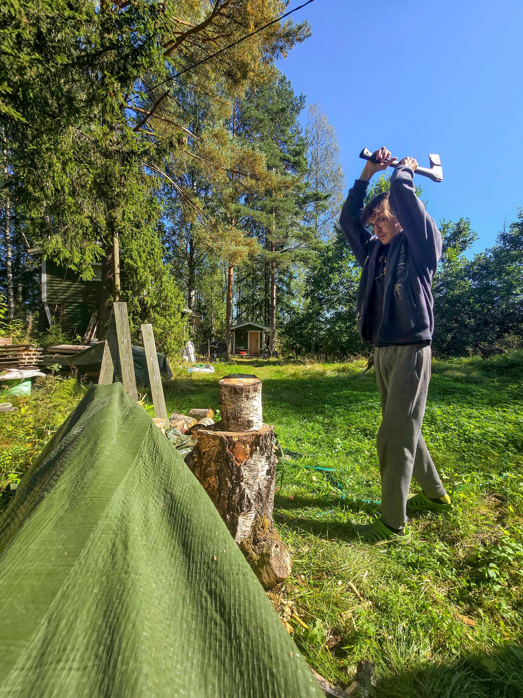 Kasvimaan hoitamista, elokuvien katselua, tietokoneella pelaamista ja koirien kanssa riehumista – siinä Henrikin tuttuja mökkiaskareita.