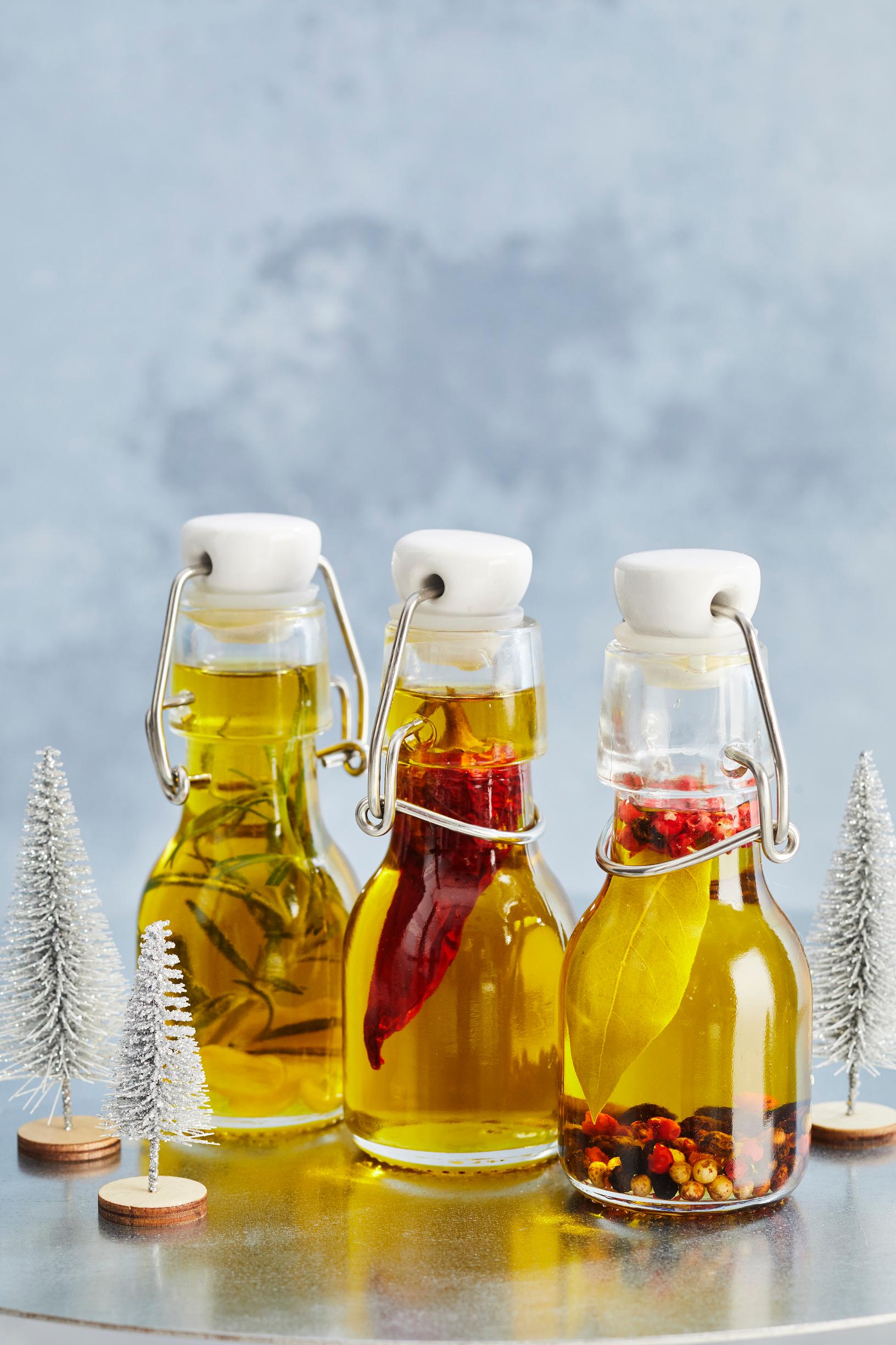 Pienet mausteöljypullot ilahduttavat ruoanlaittajaa. Sekoita laadukkaaseen oliiviöljyyn valkosipulia ja rosmariinia tai chiliä tai musta-, valko- ja rosepippureita. Kun öljy peittää mausteet kokonaan, se säilyy paremmin.