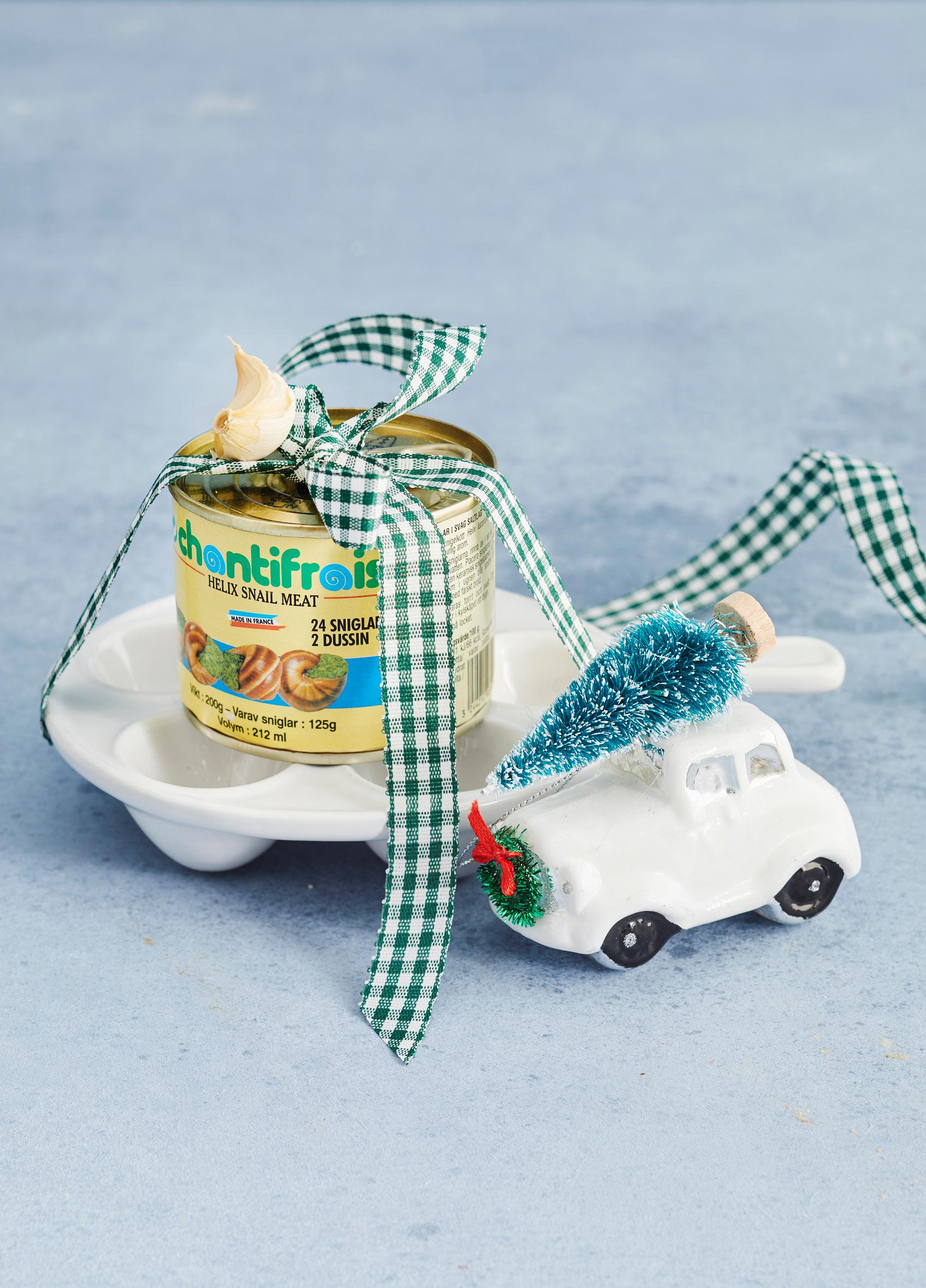 Herkkusuun toivelahjasta löytyy etanapannu kuudelle sekä tietenkin etanoita. Halutessasi voit valmistaa mukaan vielä valkosipulivoin.