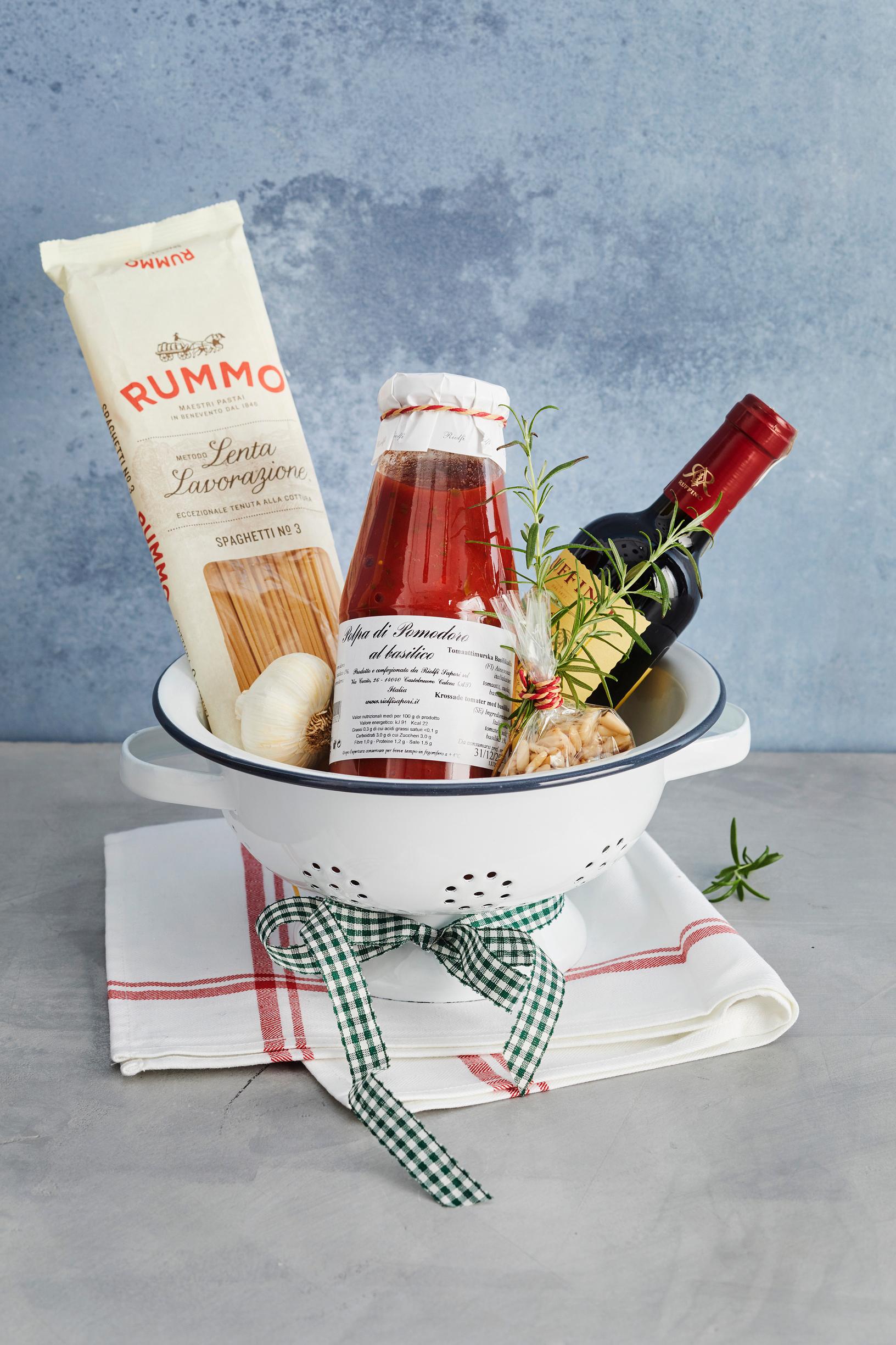 Paketoi pikkupullo hyvää pastaviiniä, pastaa, laadukasta tomaattikastiketta, pinjansiemeniä ja valkosipulia lävikköön. Tämä paketti tekee onnelliseksi, kun kinkku ei enää uppoa.