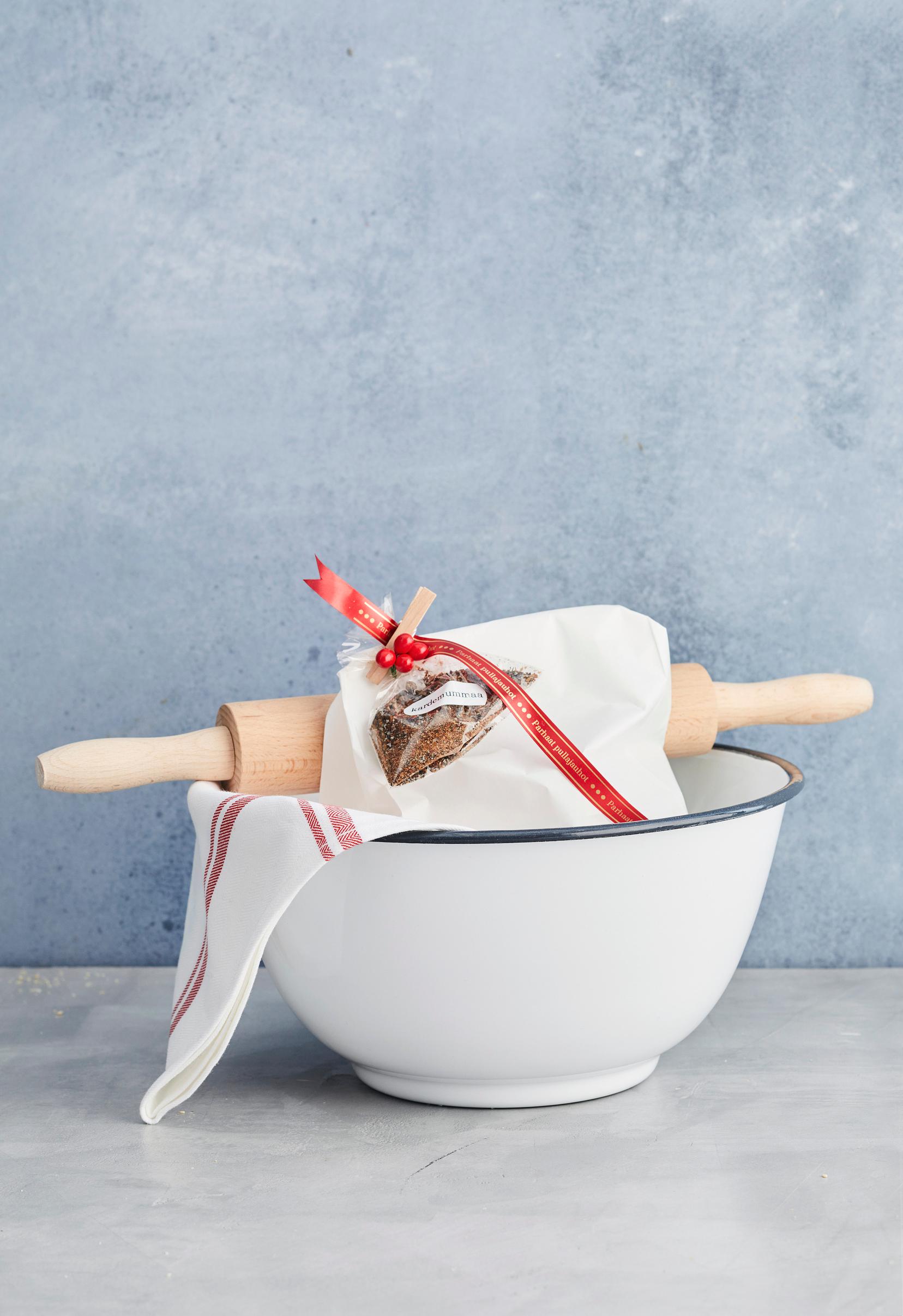 Leipuri Hiiva ilahtuu tilavasta leivontakulhosta. Lähimyllyn luomujauhot viimeistelevät upean paketin.