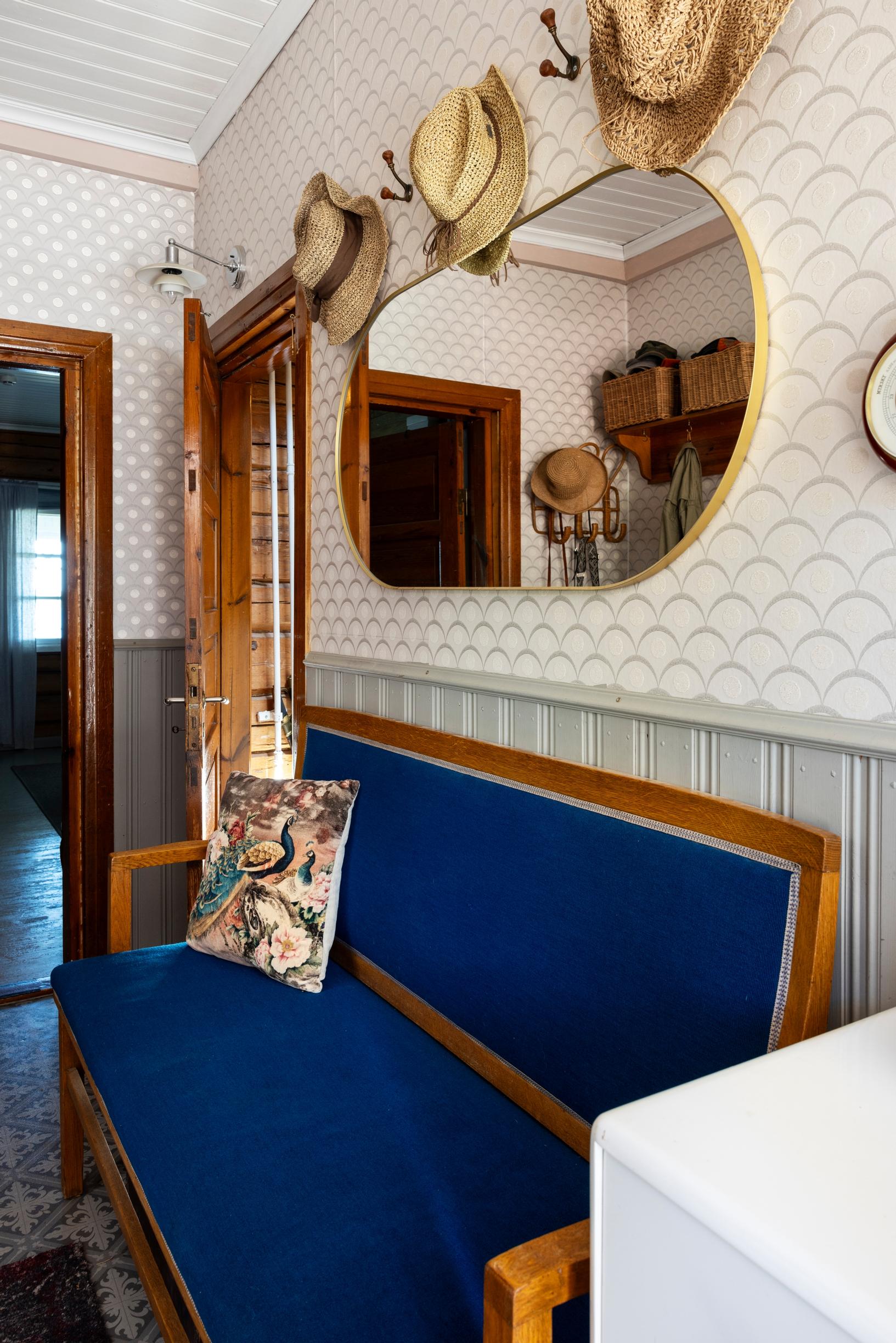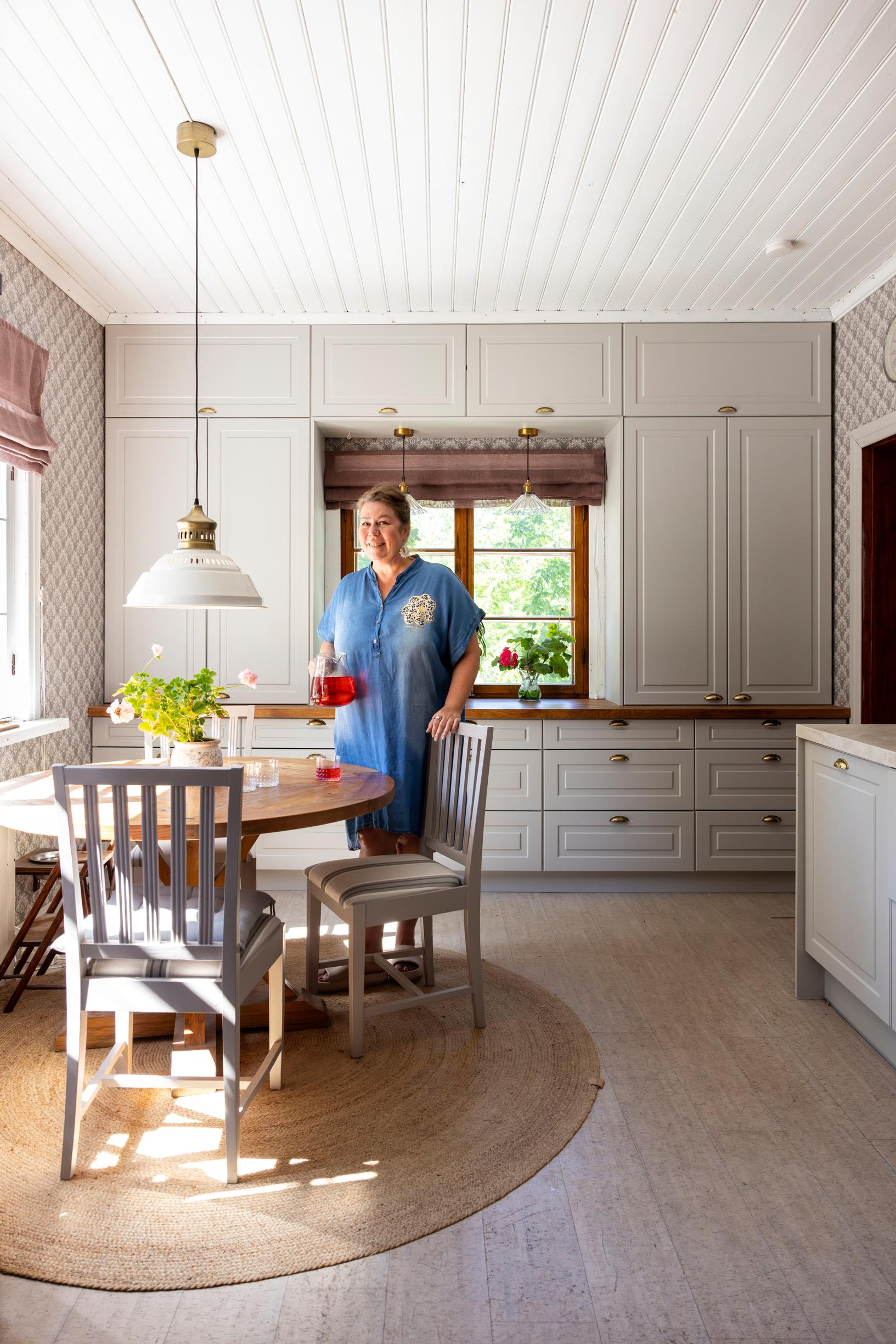 Talo oli asuttavassa kunnossa heti. Täällä oli myös valtavasti kalusteita, jotka kuuluivat kauppaan. Päätimme, että meidän on helpompi asua täällä ja remontoida tiloja hiljalleen, huone kerrallaan. Ensimmäisenä remontoimme keittiön ja siitä lähtien olemme remontoineet yläkertaa vaille kohta koko talon.