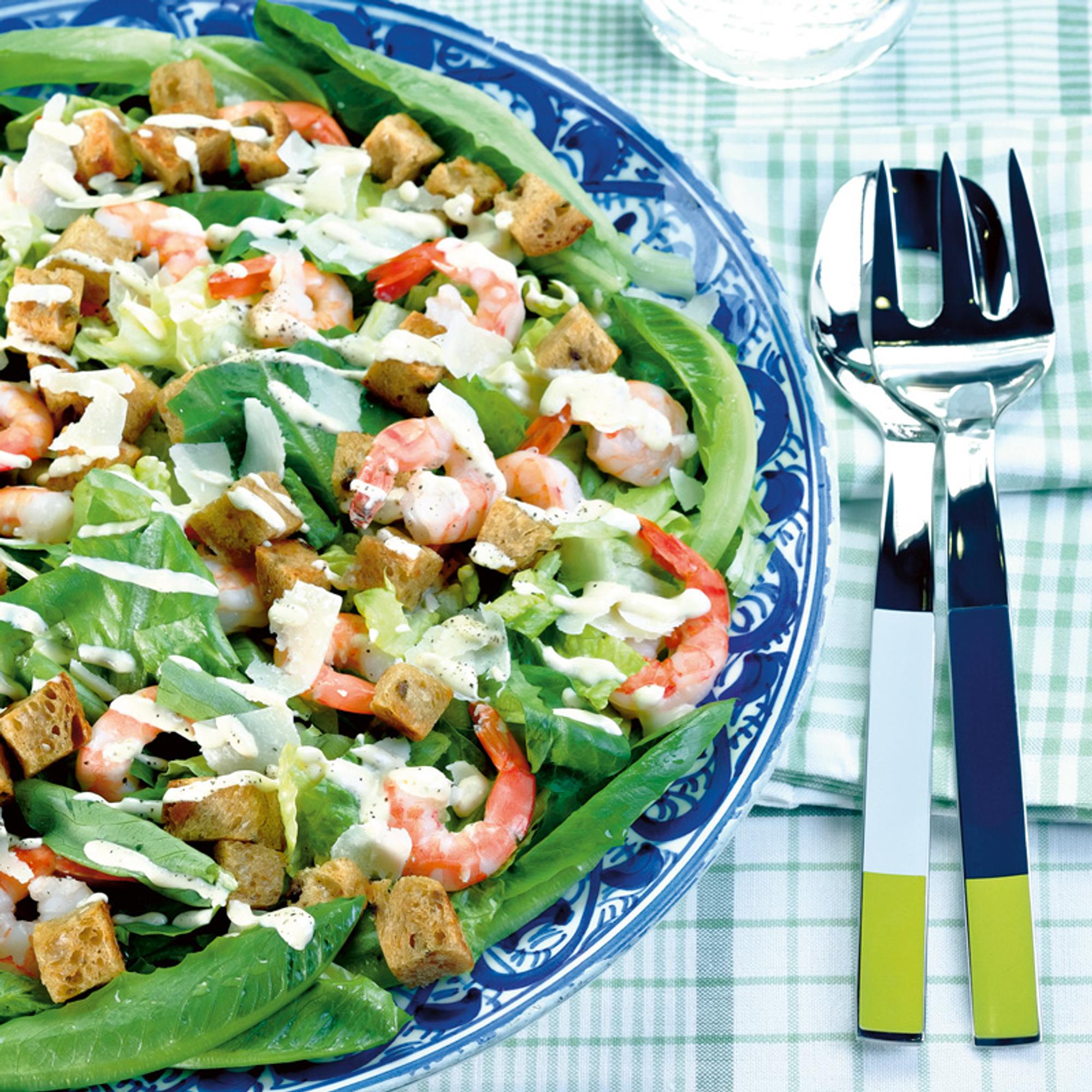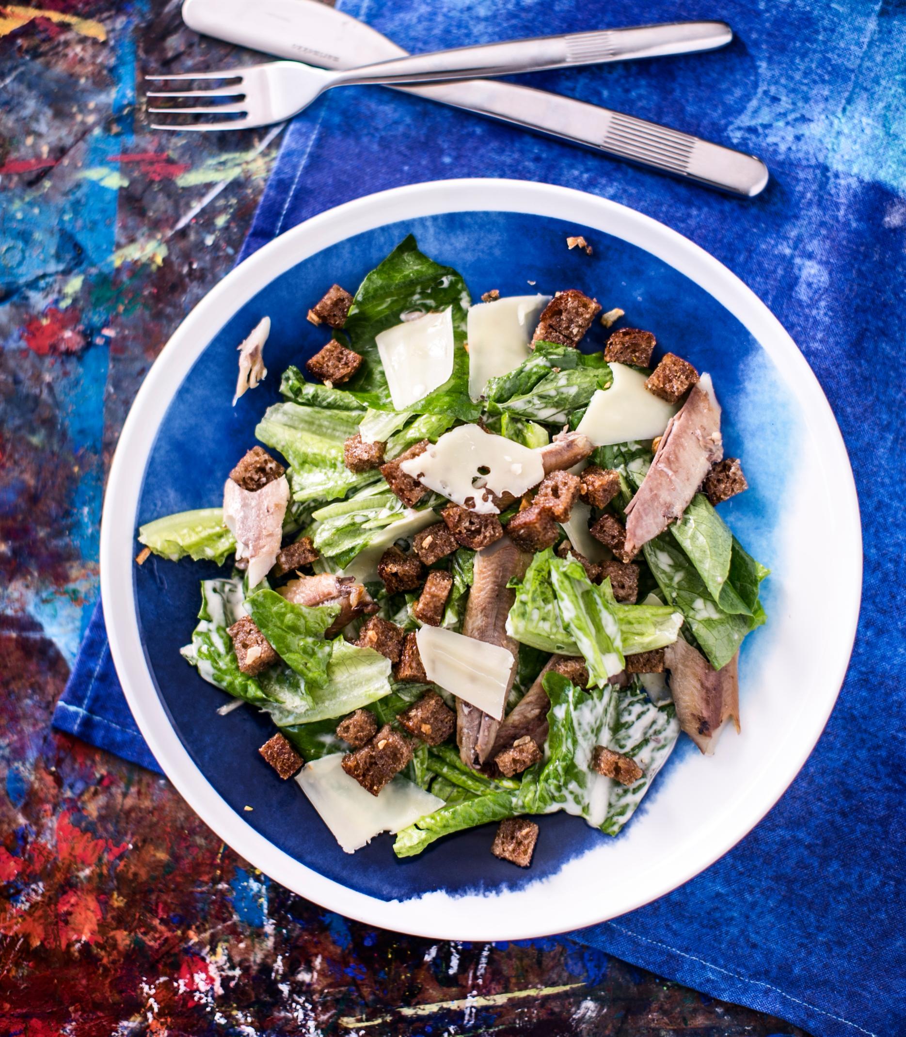 Caesarsalaatti on lähtöisin tijuanalaisen hotelli Caesarsin keittiöstä. Sisälsikö kastike anjovista vai vain worcestershirenkastiketta ja punaviinietikkaa, kuuluiko muna vain kastikkeeseen vai lisäksi salaatin päälle – versioita on yhtä monta kuin reseptinikkariakin. Yhtä kaikki, aitoon caesarsalaattiin kuuluvat roomansalaatti, parmesaani, worcestershirellä kirpeytetty sakea kastike sekä krutongit. Salaatti yksinkertainen valmistaa, mutta makua siinä on paljon. Itse tehdyt krutongit ja kastike tekevät salaatista superhyvän. Testaa caesarsalaattia sellaisenaan tai lisäkkeenä.